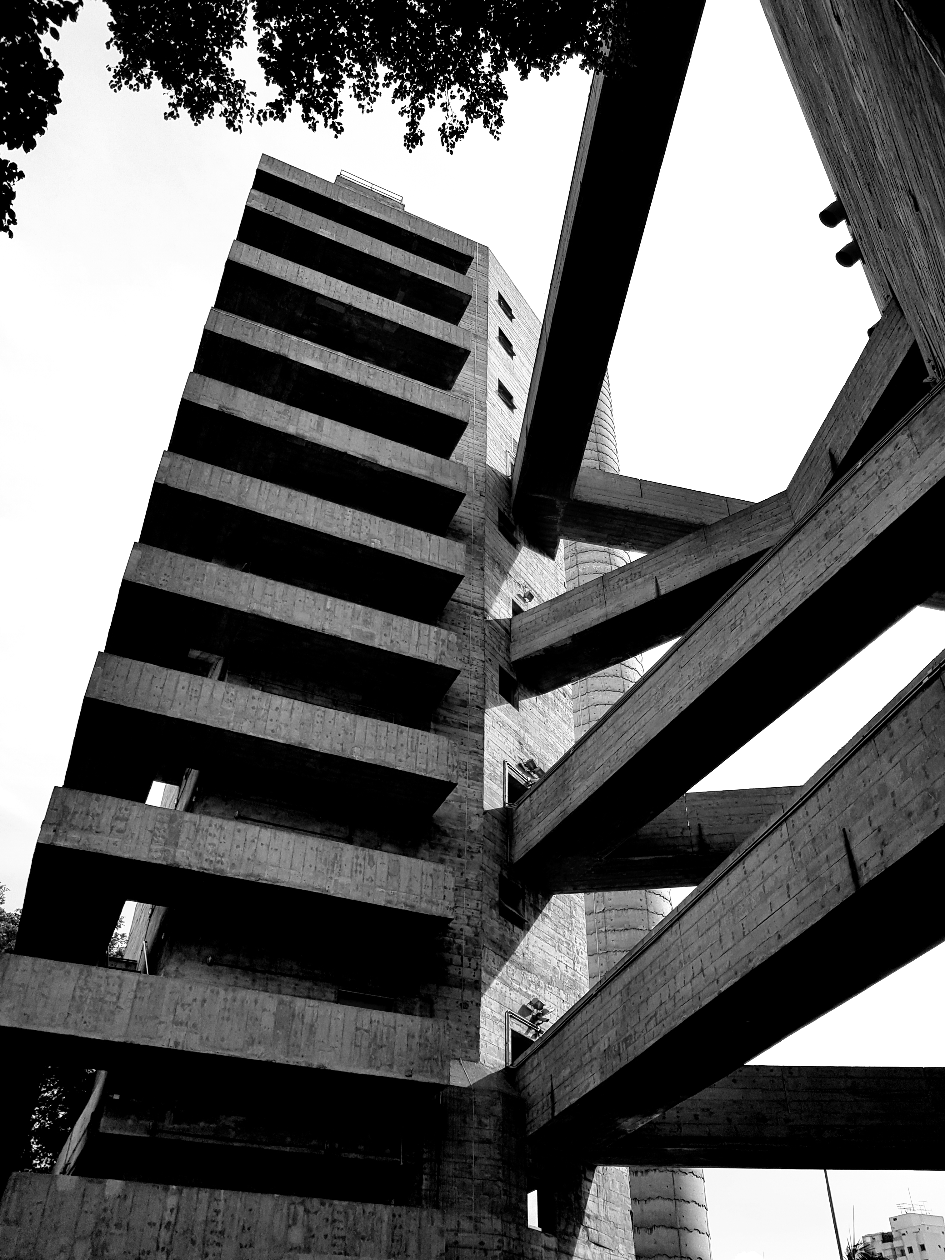 My last post from São Paulo is of SESC Pompéia, Lina Bo Bardi’s final major architectural project, which she started work on in 1977 and was opened in 1982. It was an old industrial site, a drum factory, converted into the Centro de Lazer Fábrica da Pompéia, a very upmarket and much more idealistic version of a British municipal leisure centre, inspired, to an extent, by the Centre Pompidou and much influenced by Bo Bardi’s residual communism. She, like Mendes da Rocha later, sandblasted walls and brought the old buildings back to their original condition:-