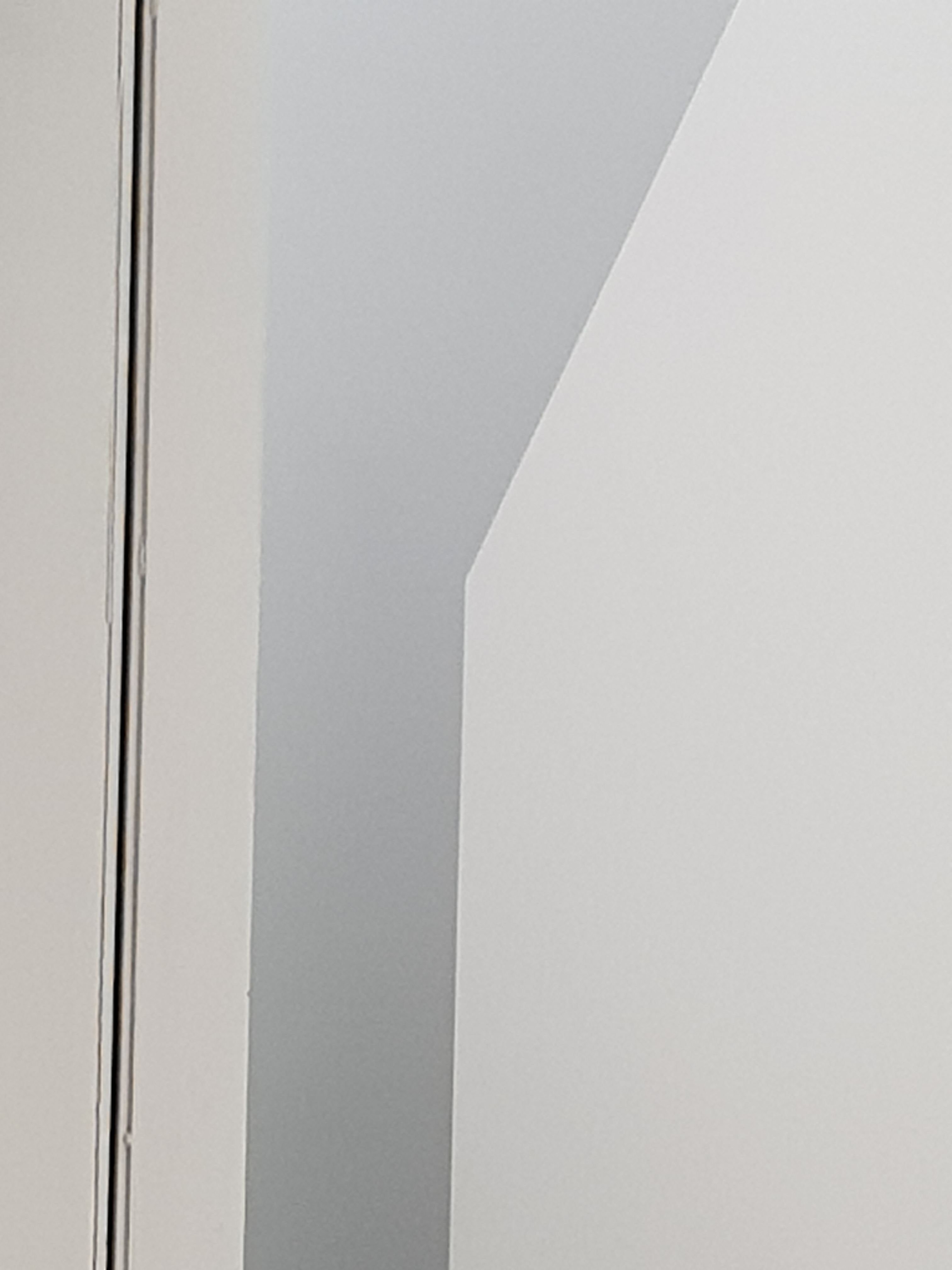 And upstairs a work made of cast styrofoam, playing on the ambiguity of different types of material and colour and the way styrofoam fragments into craters:-