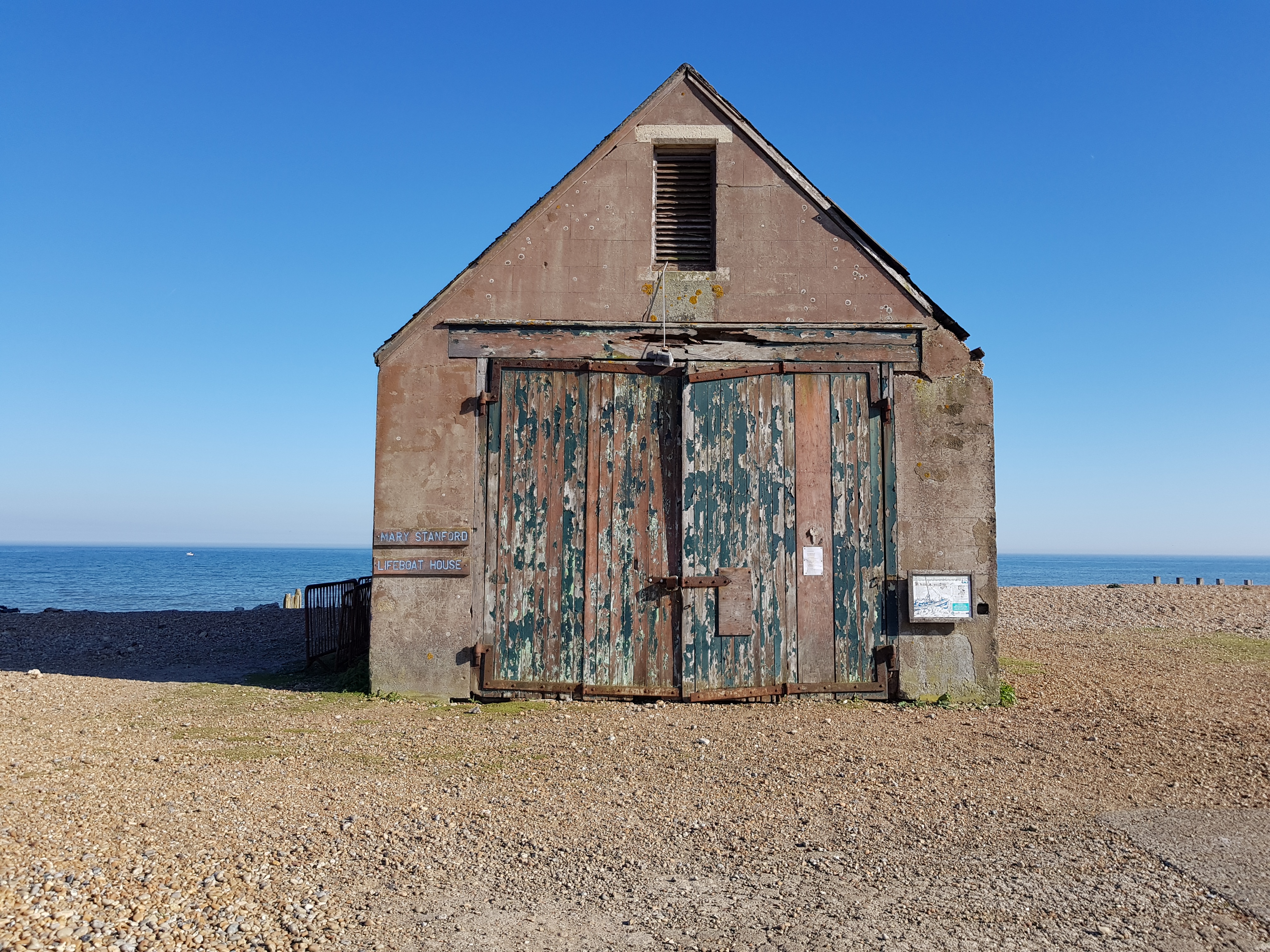We walked out to the beach at Winchelsea, all shingle, to the Mary Stanford Lifeboat House, unused since its crew went out to save a Latvian boat in the English channel in the early hours of 15 November 1928, the boat capsized and all seventeen were lost. The lifeboat house has not been used ever since:-