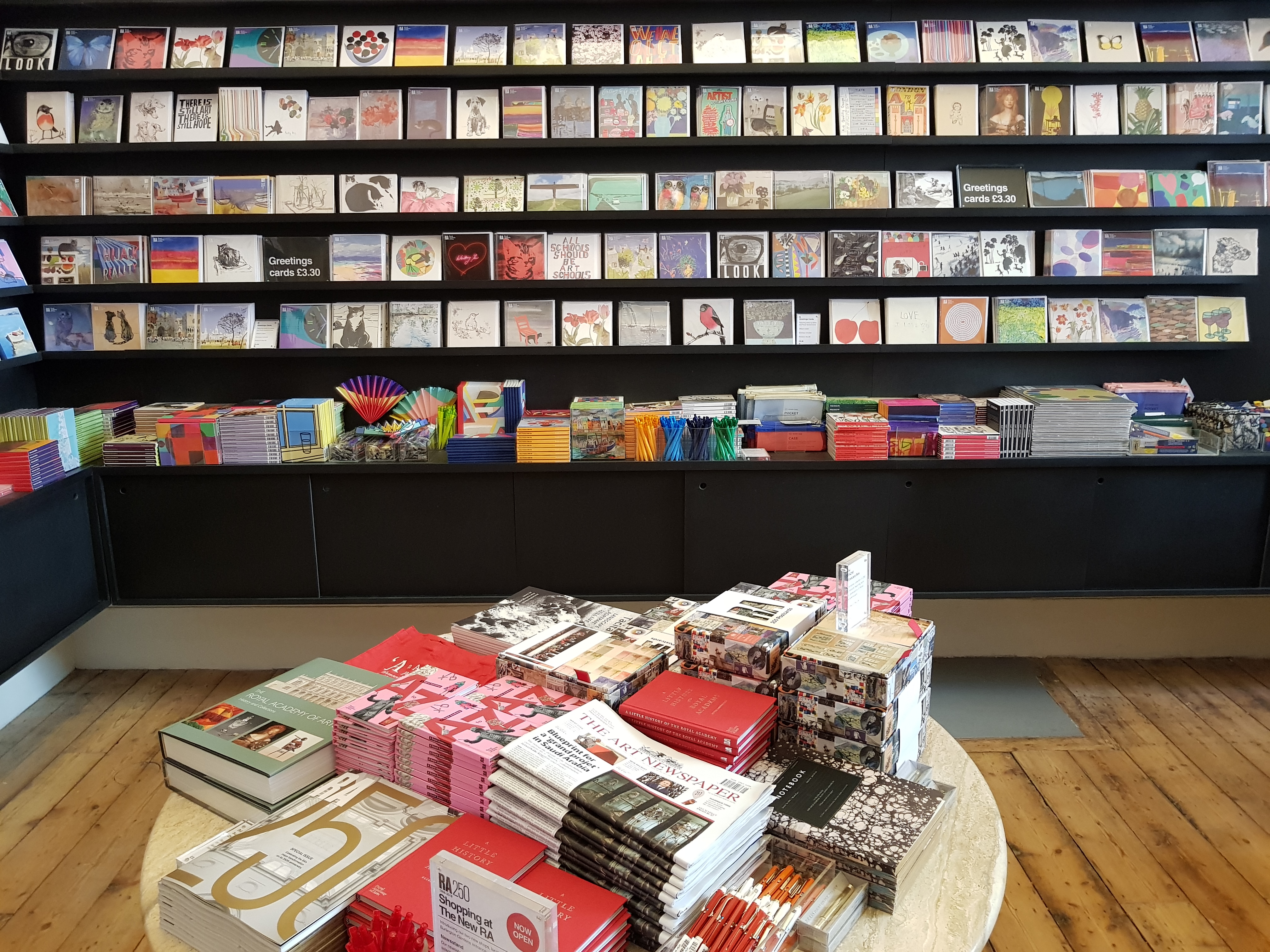 I’m delighted by the trio of commercial spaces on the ground floor, which strike just the right balance between being clearly commercial, but also appropriate to the atmosphere of the building – the Poster Bar which has been designed to be like the bar of an Eastern European railway station, the Personal Shopping space with its plan chest, and the Newsstand with the latest art magazines (and, by the way, buy a card, write it, and have it posted for you – a lovely idea):-