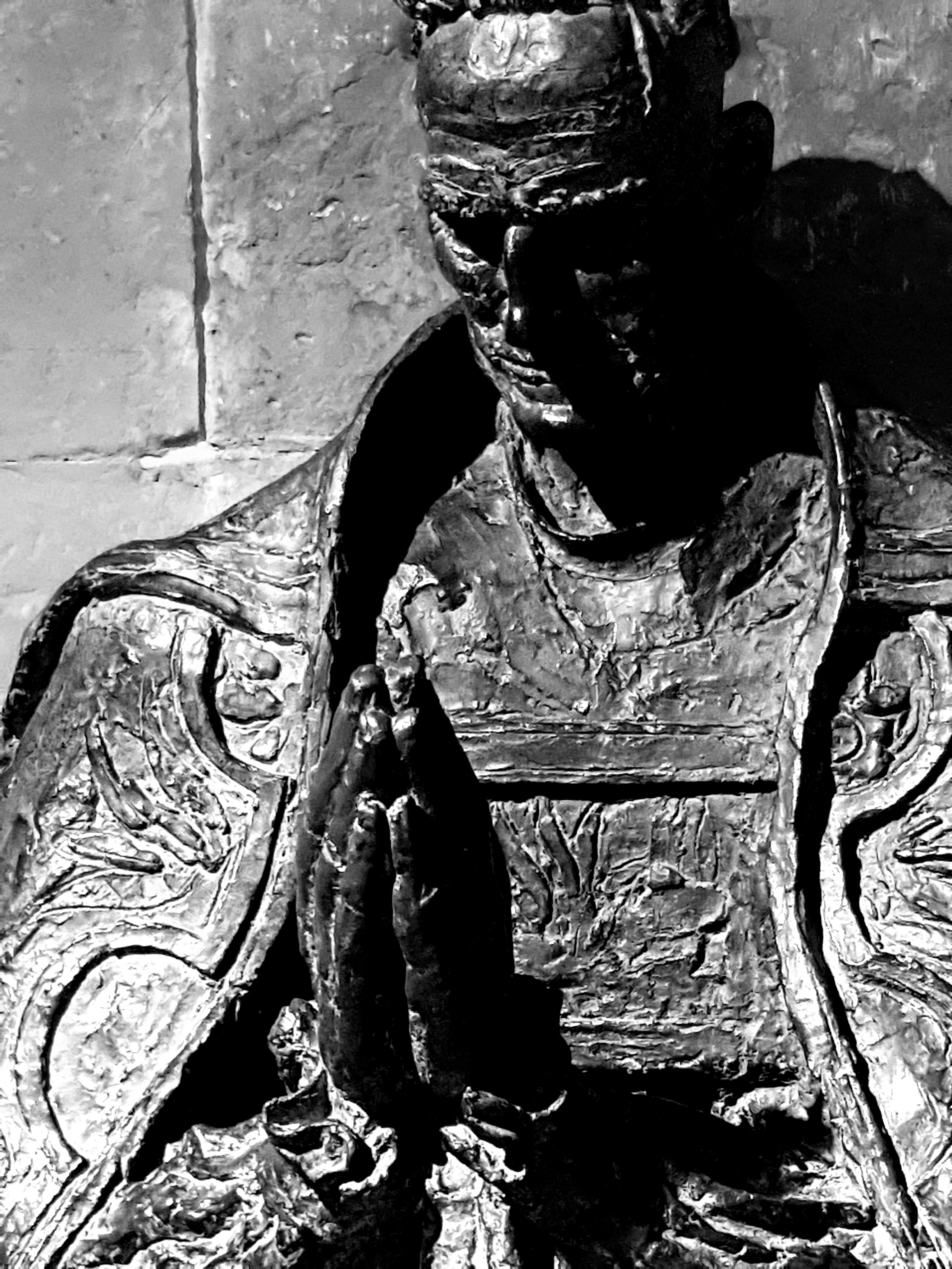 And in the north Choir Aisle a powerful Epstein memorial to the evangelical Bishop Woods who was a great tennis player and used to walk round his diocese:-