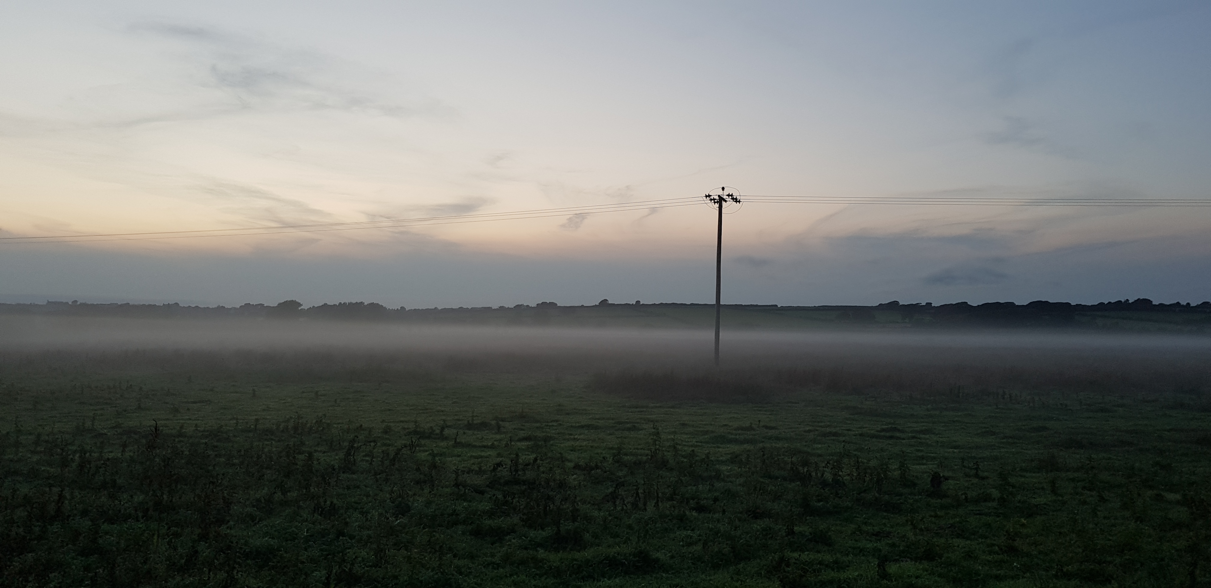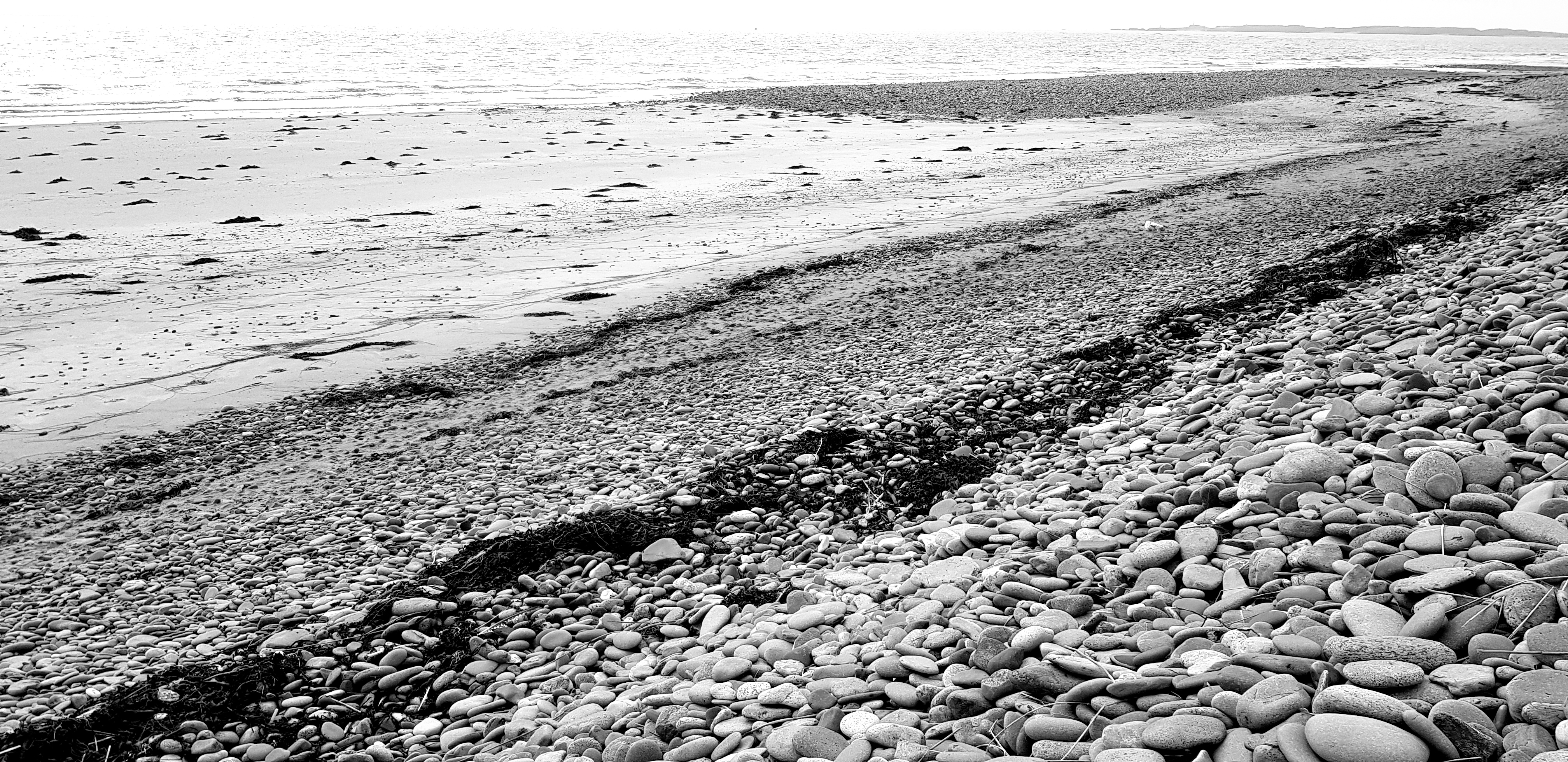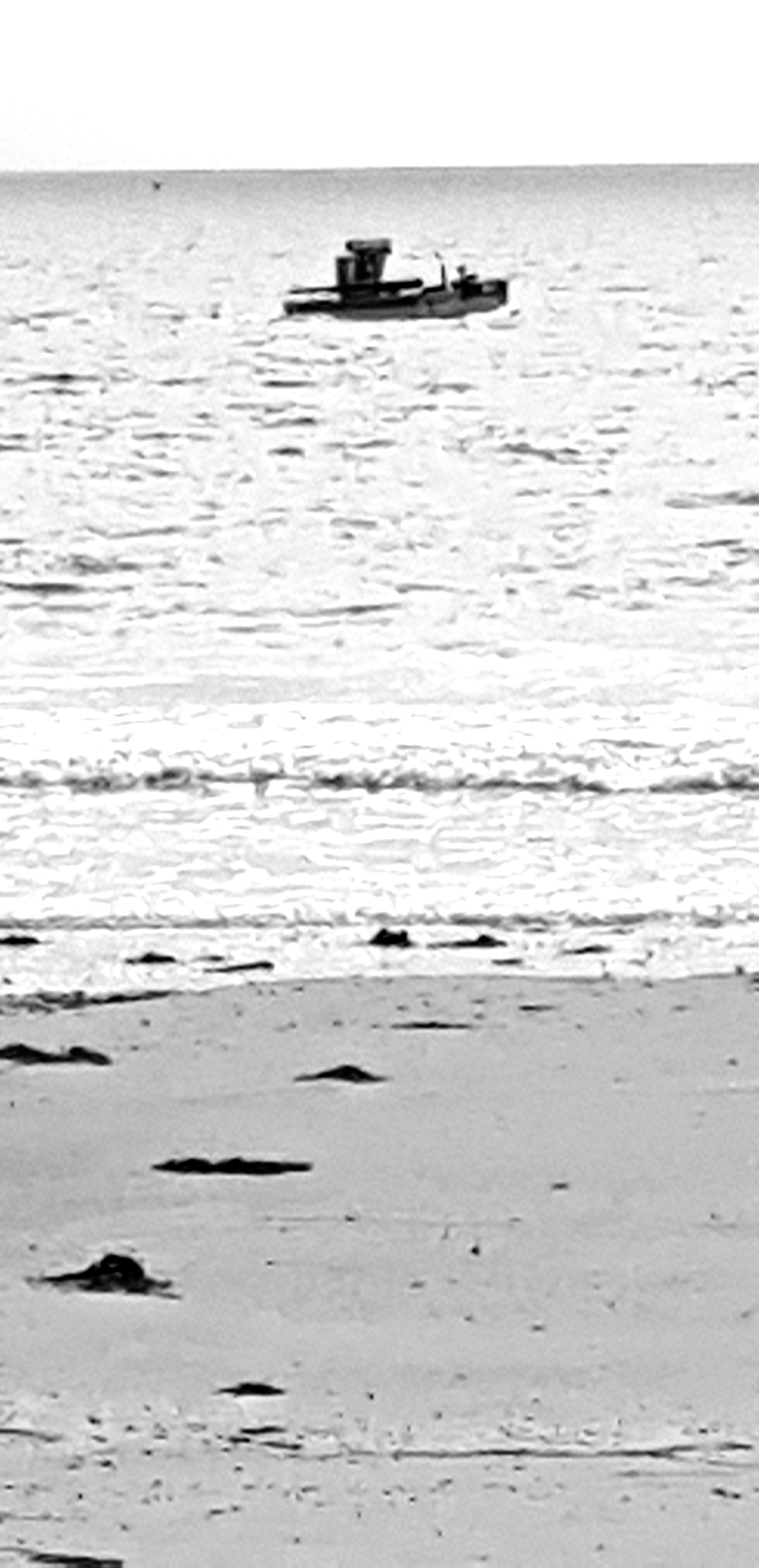 I walked out to the beach today in the hope that it would clear from the west as it often does in the late afternoon. It only half did. A foggy sun and a single boat on the sea:-