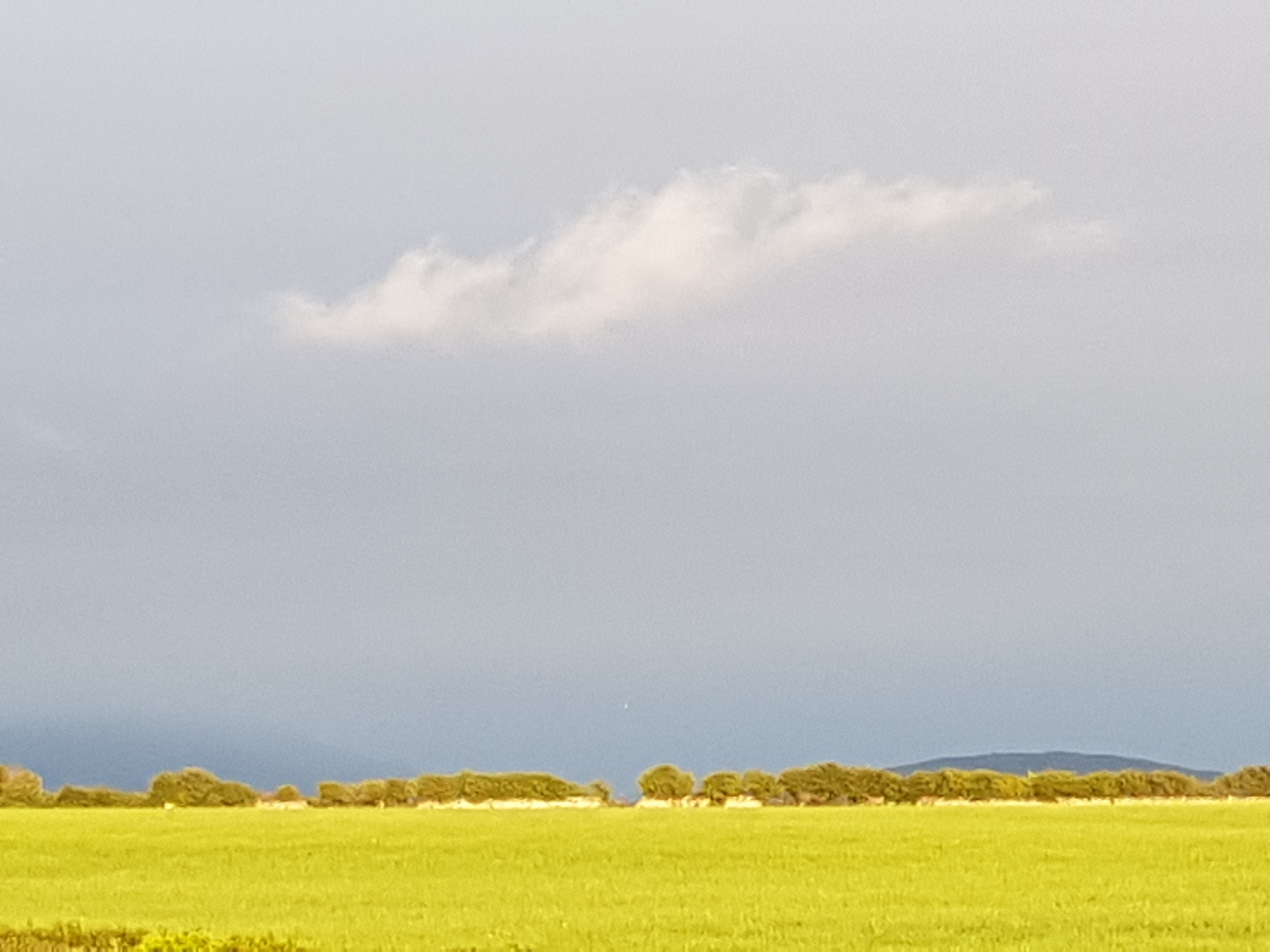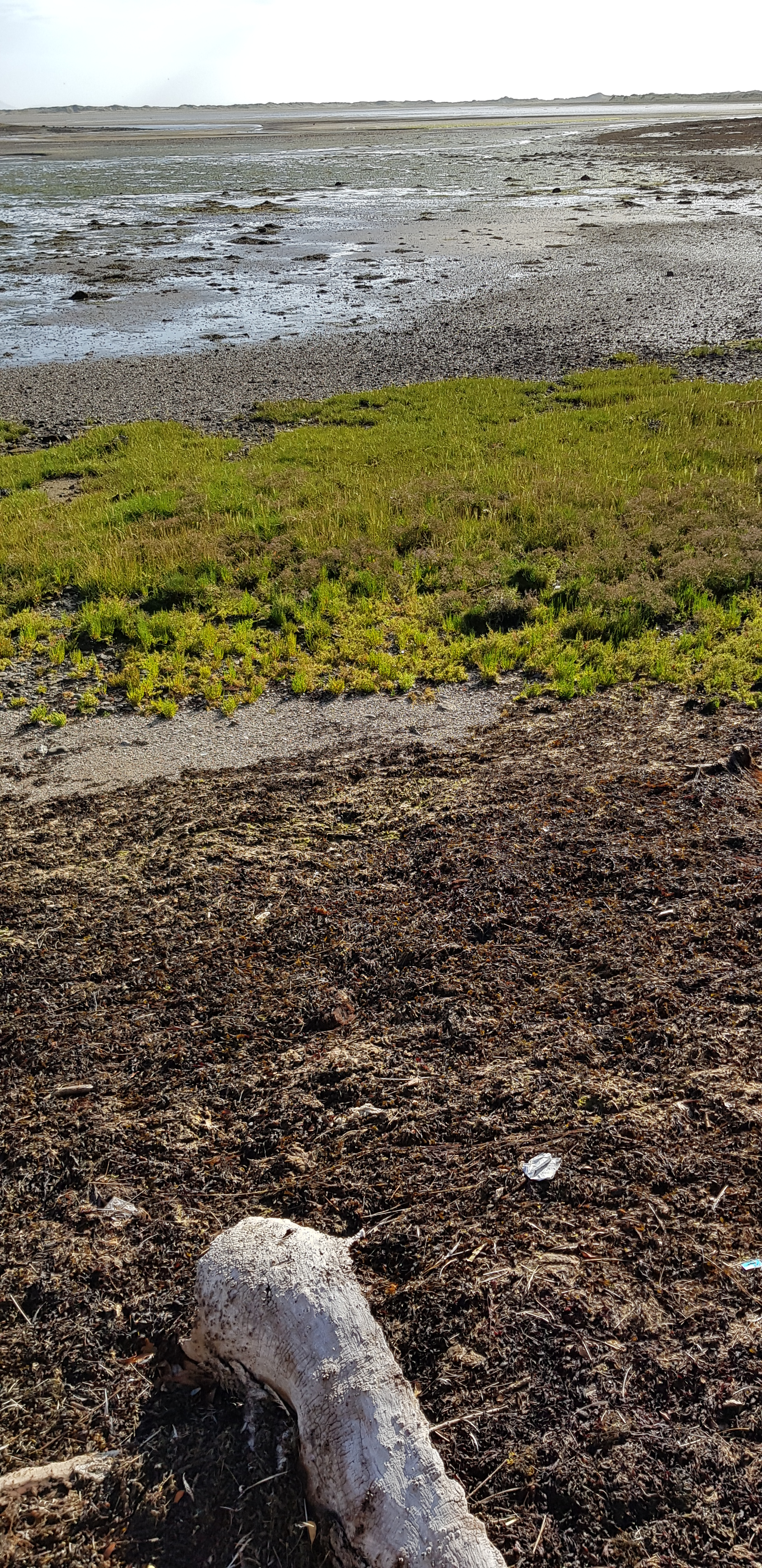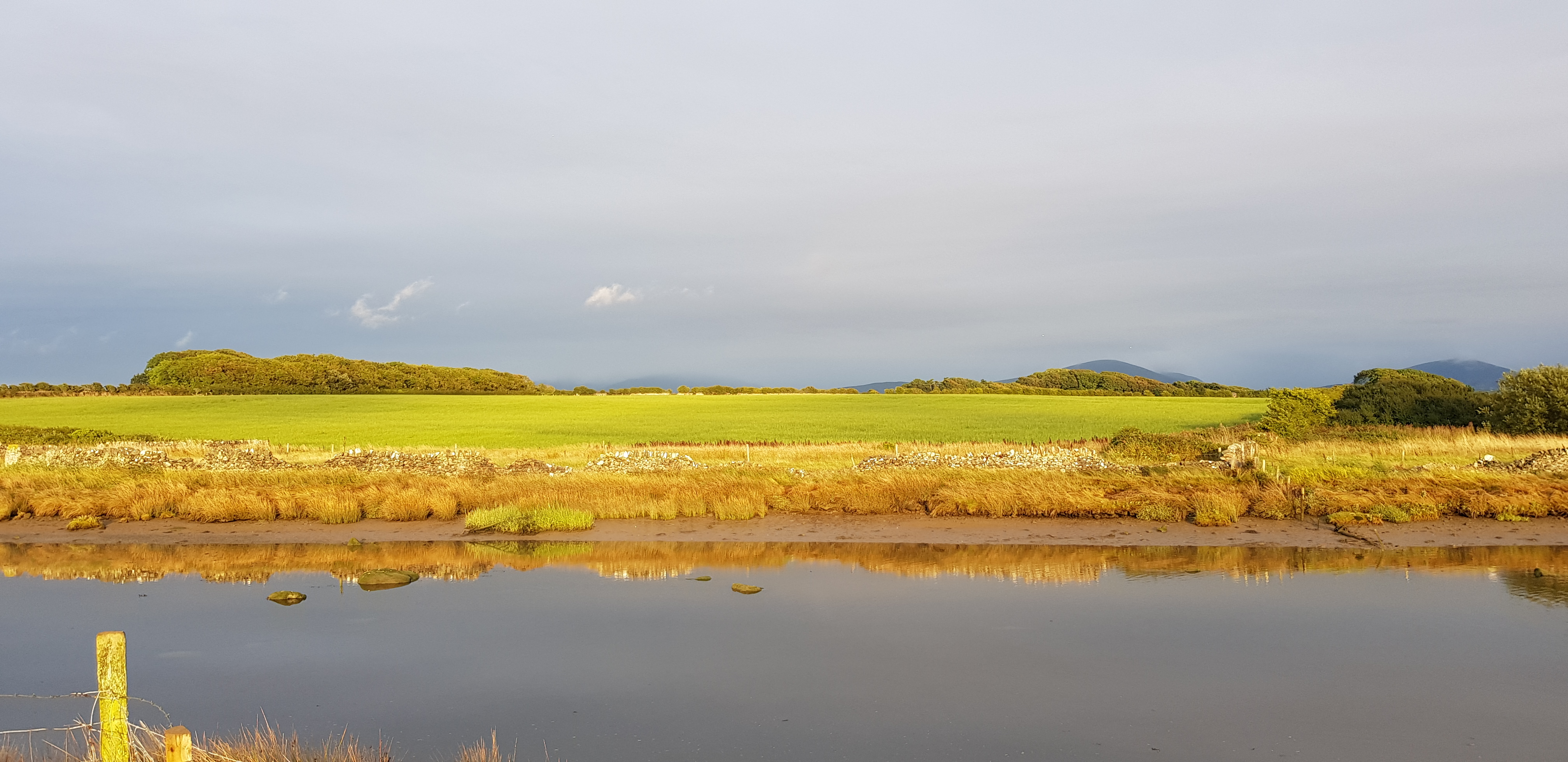 It was the same today as yesterday: rain in the day, clearing in the evening. I walked down the other side of the estuary, where it is all samphire and marshland and one sees the same view, only more pastoral:-
