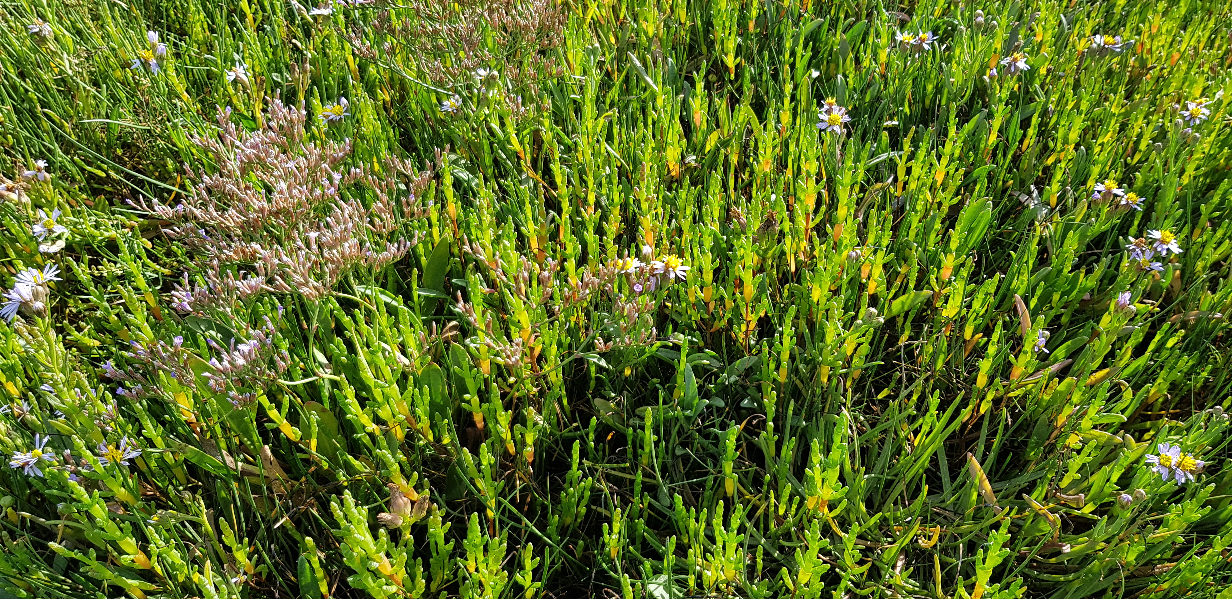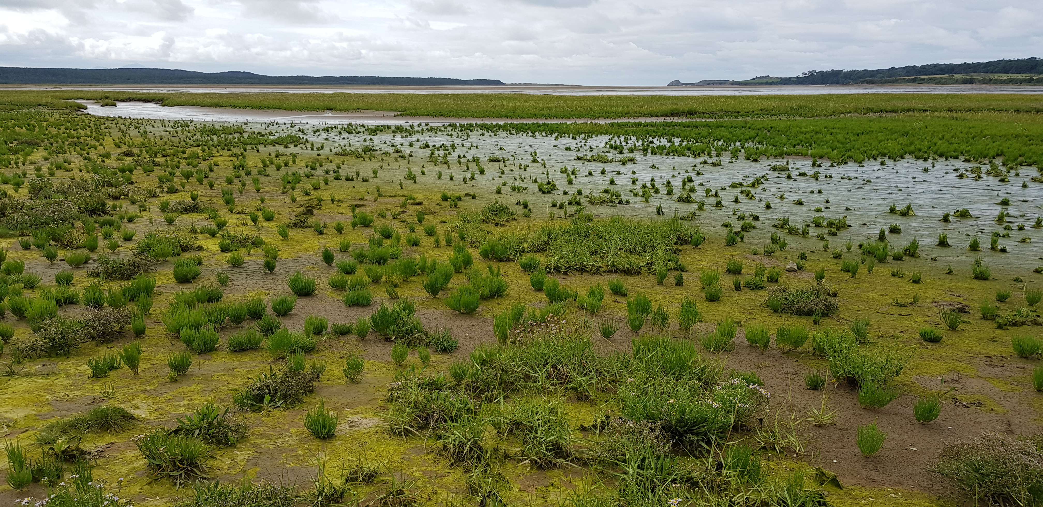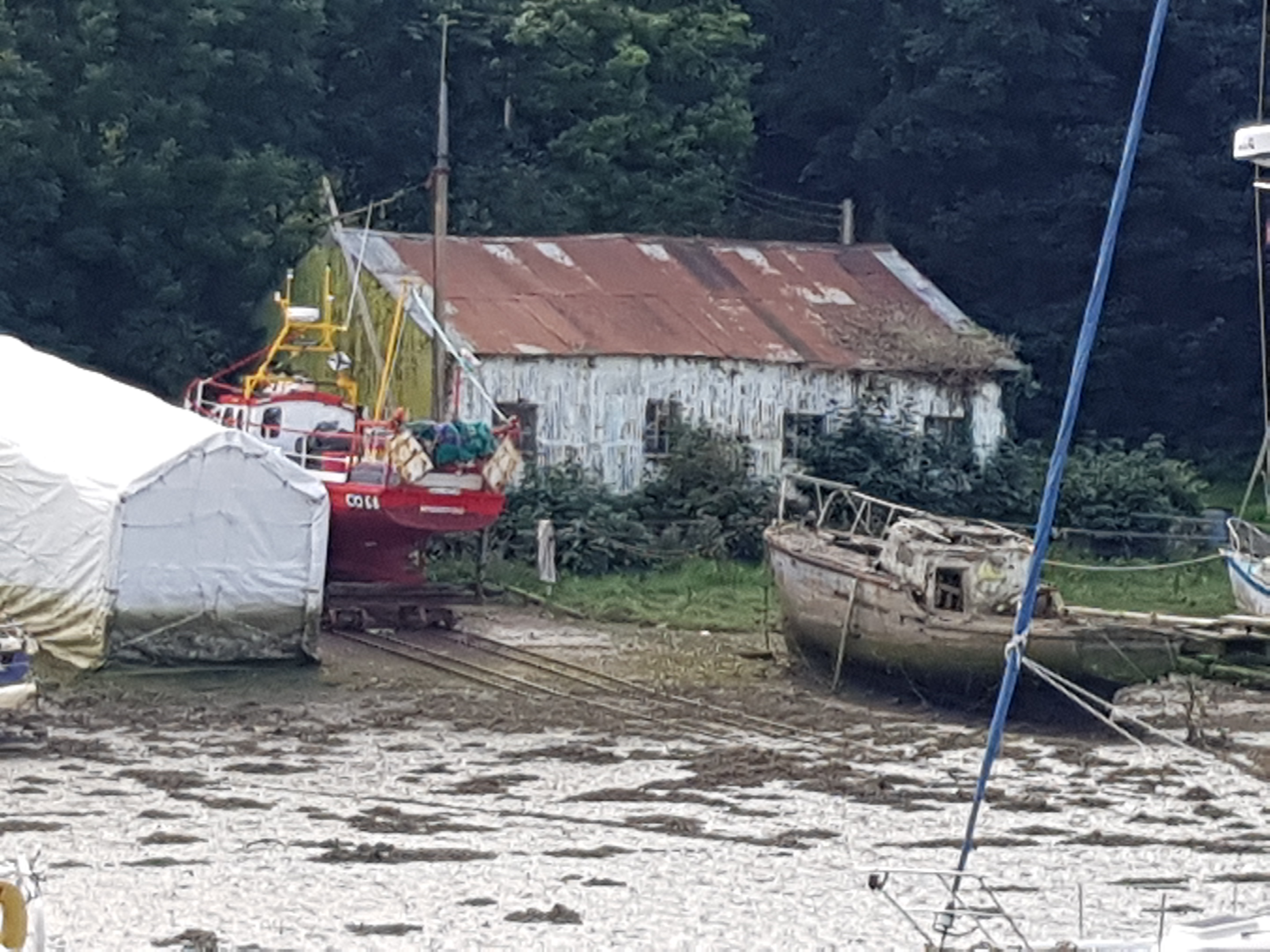 It was the same today as yesterday: rain in the day, clearing in the evening. I walked down the other side of the estuary, where it is all samphire and marshland and one sees the same view, only more pastoral:-