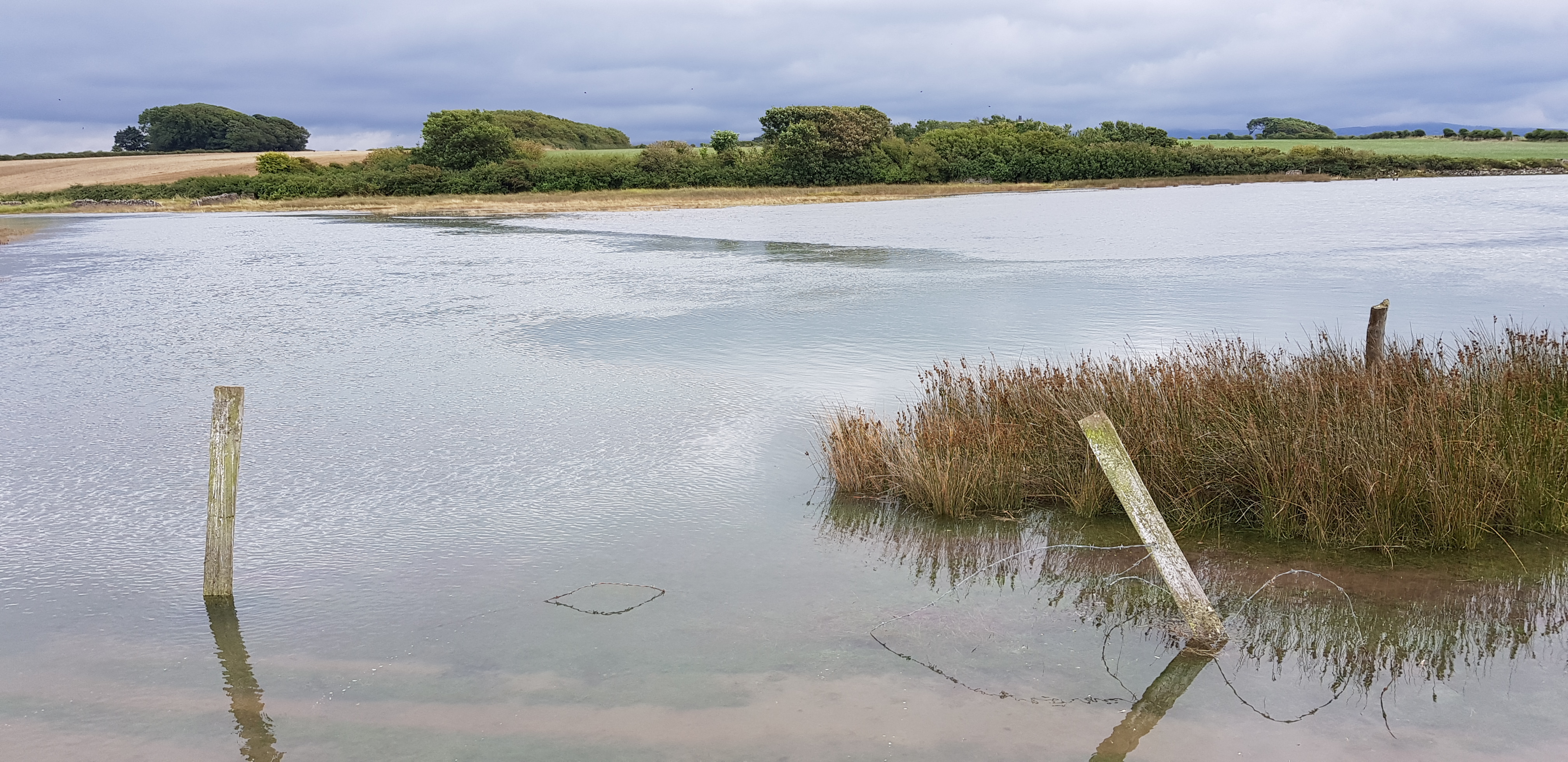 I was worried that the reason why the water level on the River Afon was so low was owing to the long hot summer which had drained the river of water. I was quite wrong. It is owing to the height of the tide at this time of year, which produces a low and correspondingly high tide, such that this morning the river had become a lake:-
