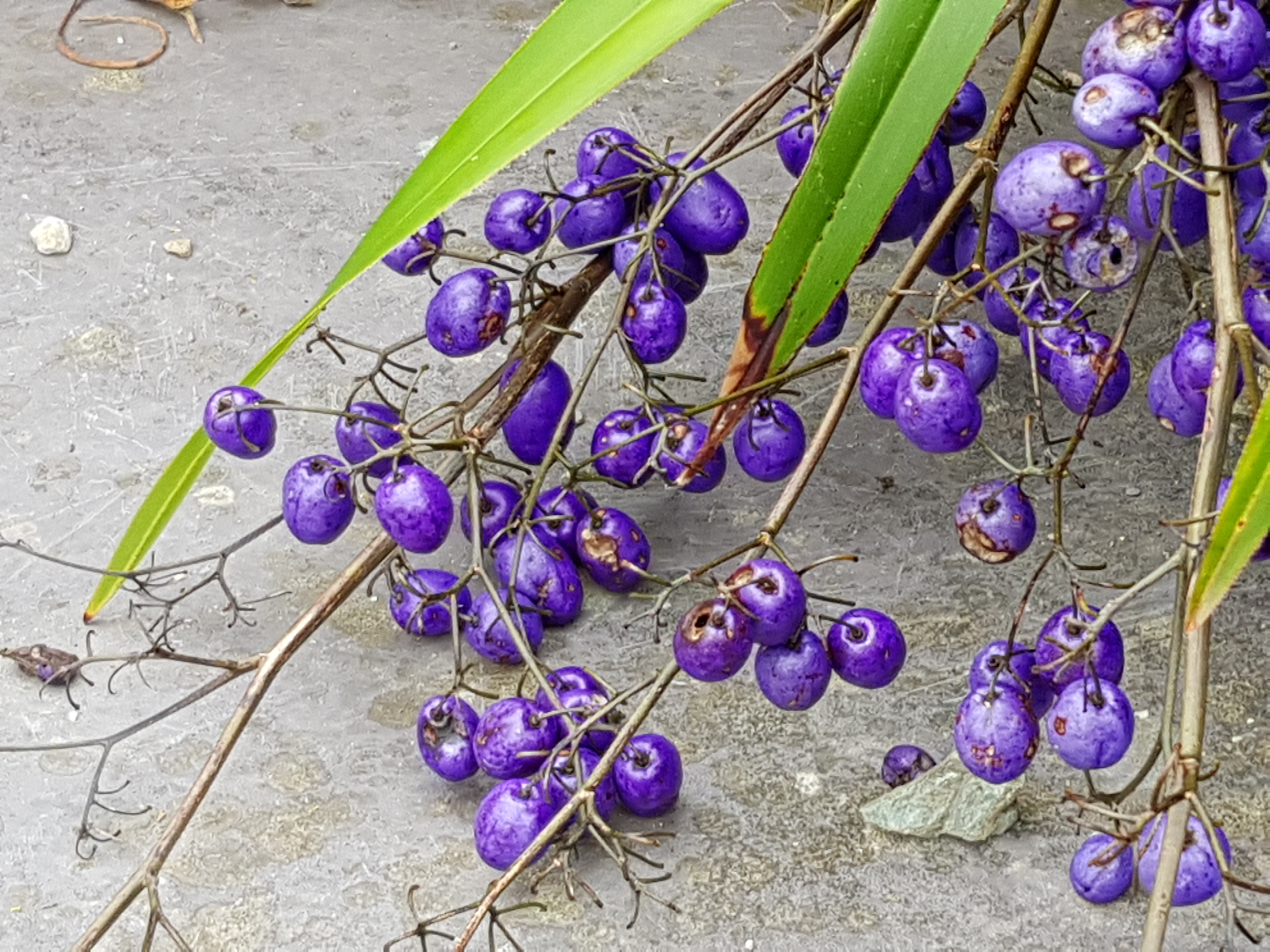 I have now discovered that the bright purple plant which we were unable to identify in the big west-facing border at Cadnant is called Dianella and is normally found in the far east, Australia and the Pacific Islands: so named by Lamarck in 1786. The berries may be poisonous:-