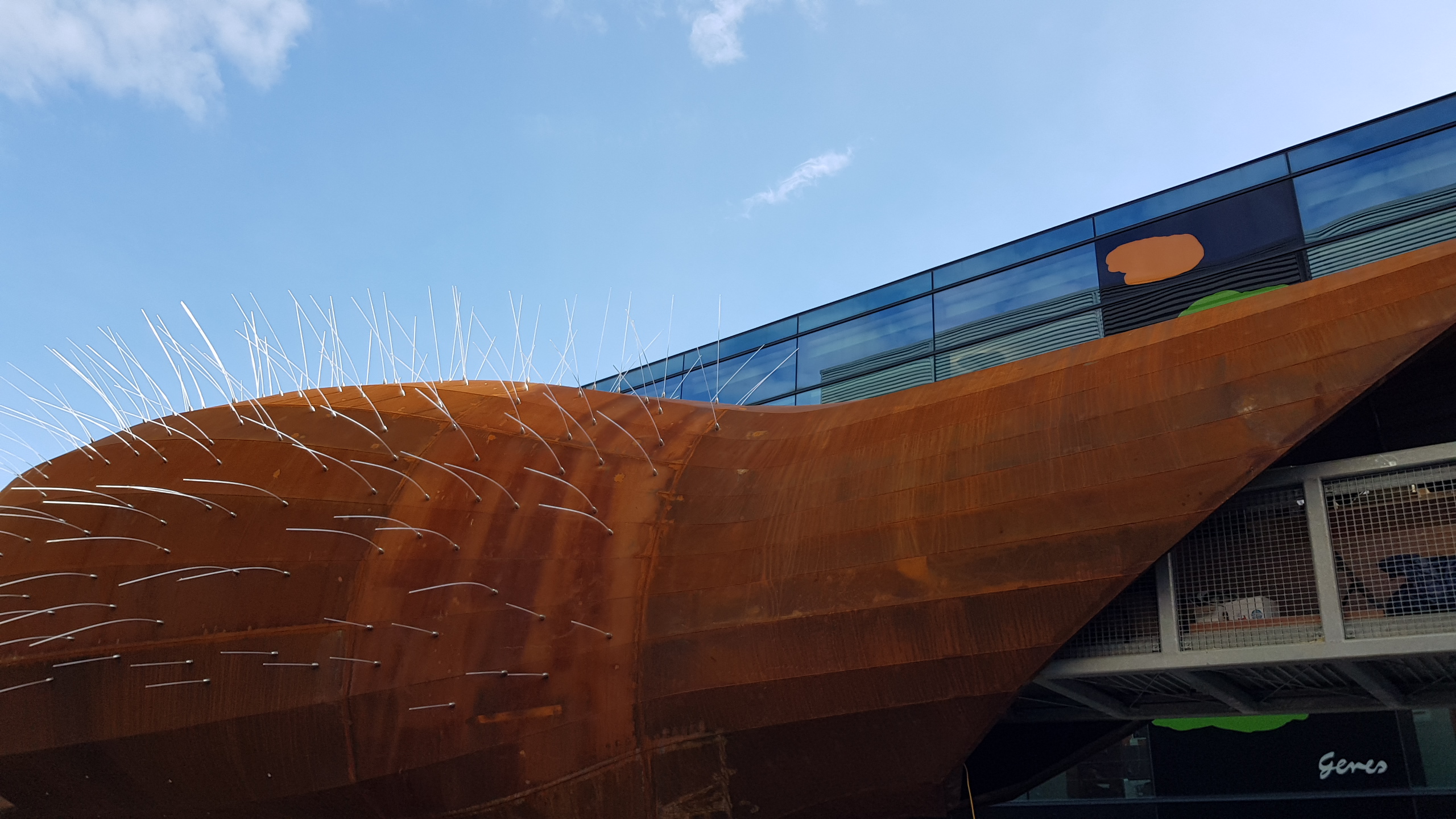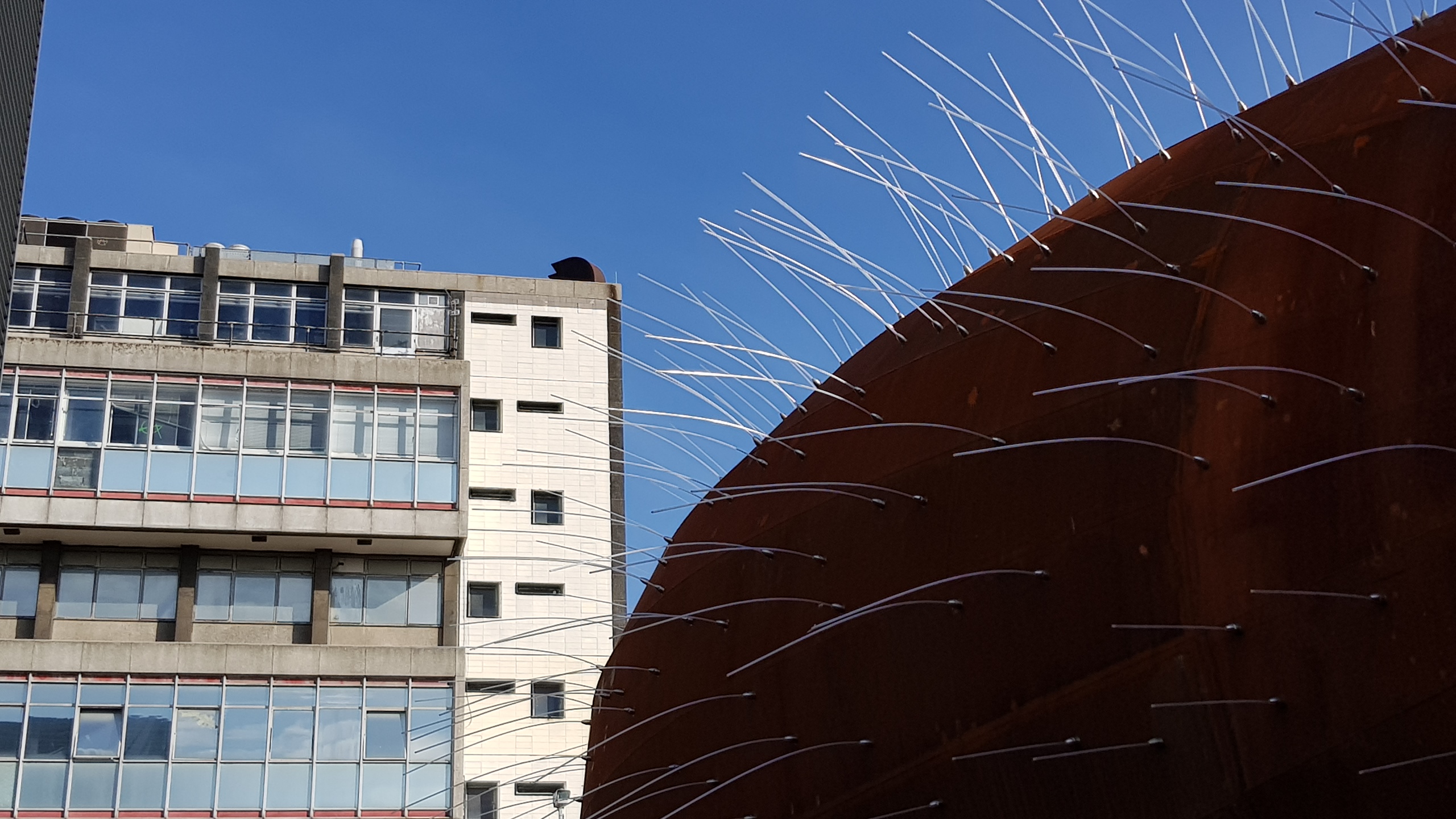 I read about the Neuron Pod on the Survey of London’s excellent blog about the work they are doing on Whitechapel. It’s a symbolic construction sandwiched between the two halves of Will Alsop’s Blizard Building. Since I was passing, I thought I would look. It’s designed by aLL Design, an odd, but fascinating beast to have arrived in Whitechapel:-
