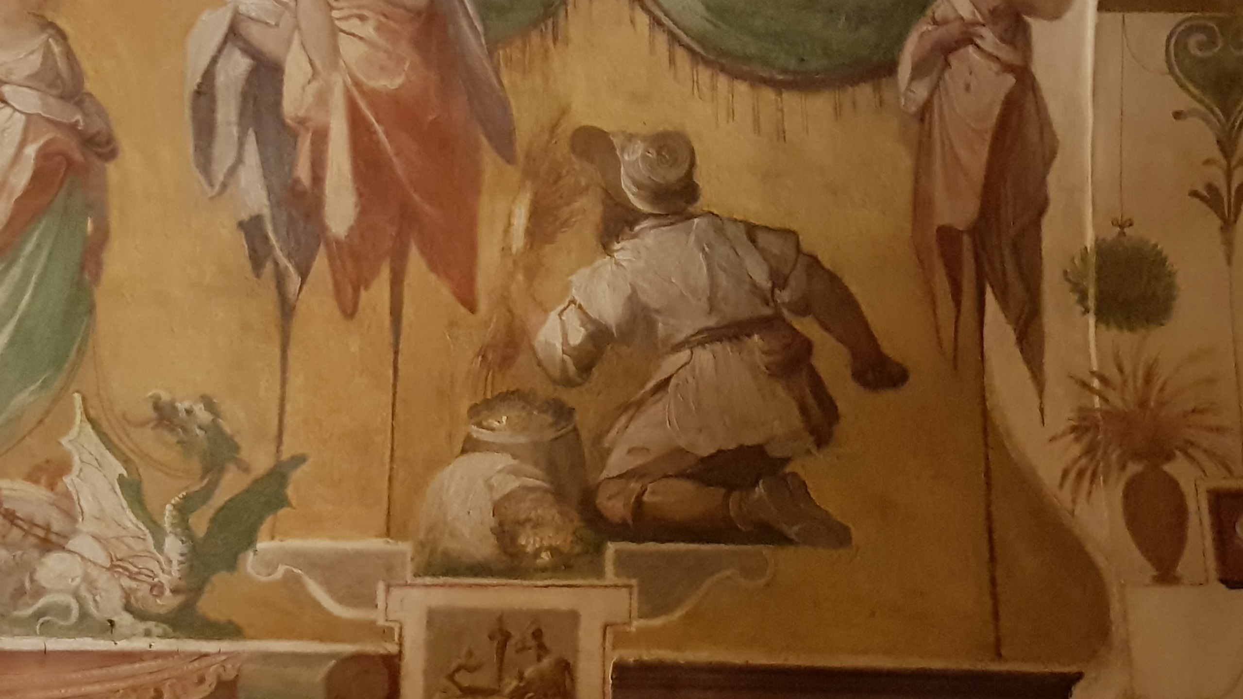 We explored the gardens by torchlight, finding the painted decoration by Jacopo Zucchi which was only uncovered in 1985:-