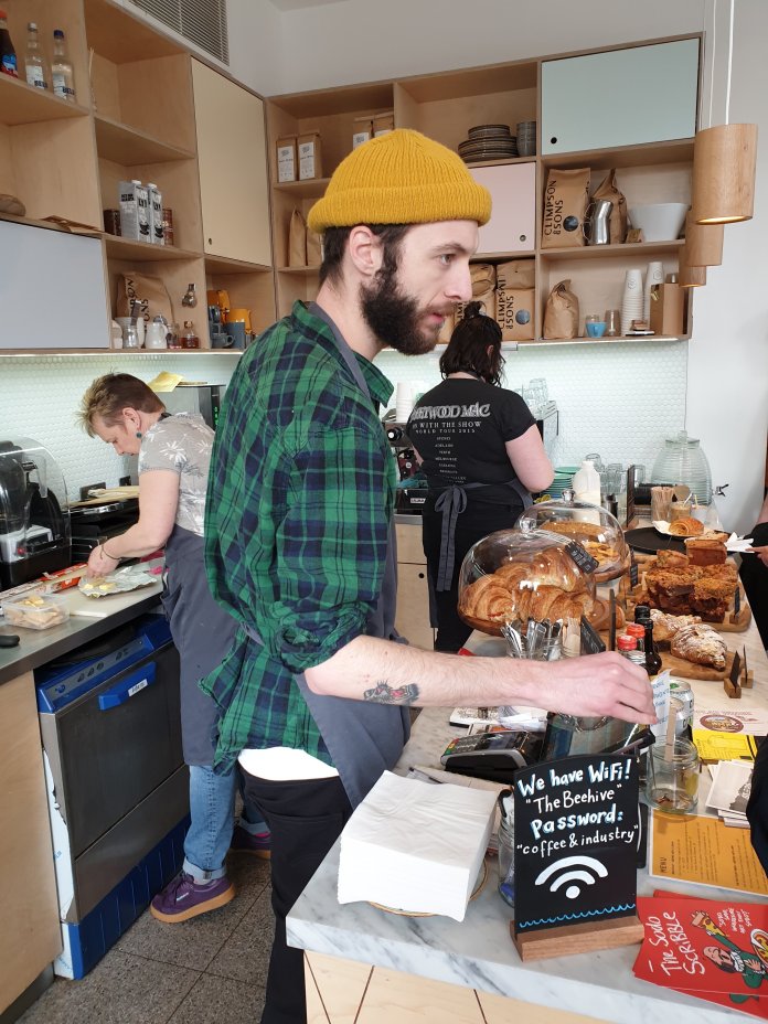Best of all is THE BEEHIVE COFFEE AND INDUSTRY on the corner of Cambridge Heath Road:-