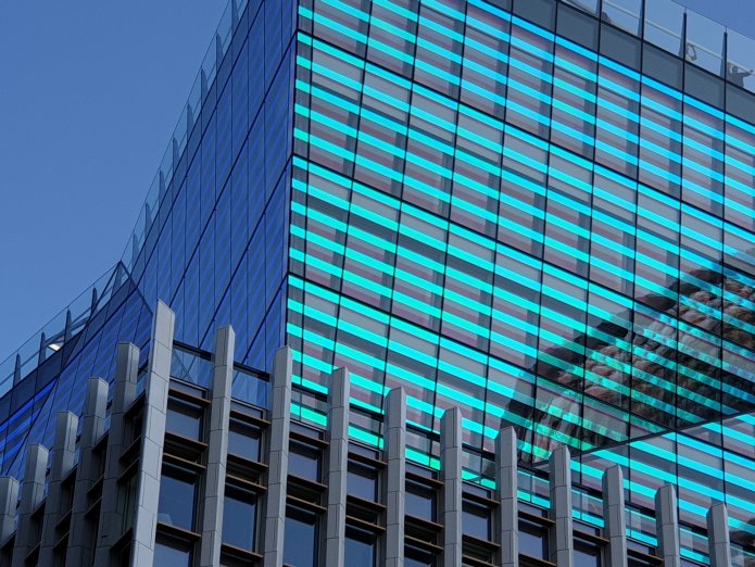 The entrance is space age corporate. You come out in a forest of new towers:-