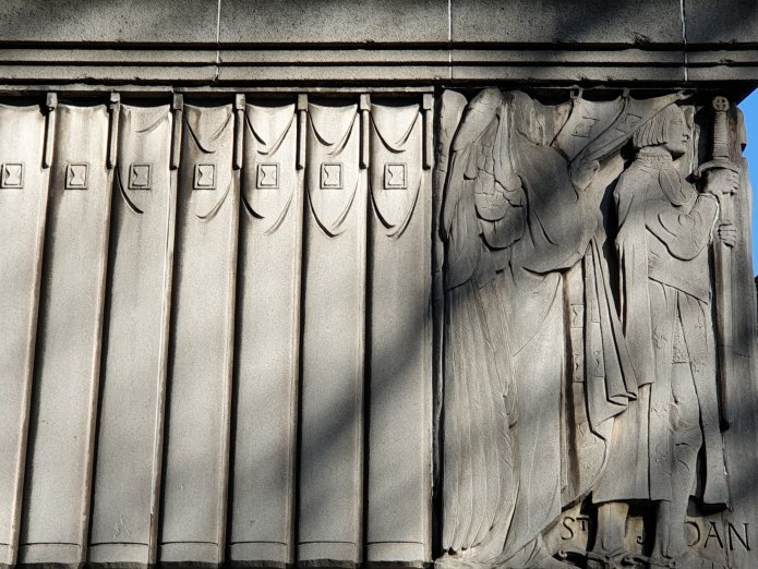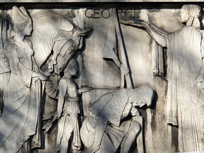 I have often been stuck in a traffic jam on Shaftesbury Avenue and admired the 1930s murals on the side of what was once the Saville Theatre, opened on 8 October 1932, and is now the Odeon Cinema, Covent Garden. The murals are by Gilbert Bayes, a student of George Frampton, apparently known for a ceramic frieze which he did for Royal Doulton and is now in the V&A.