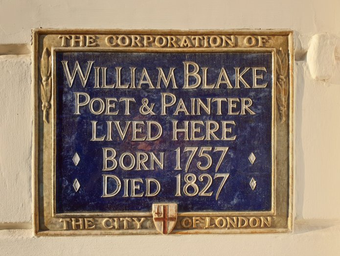 I don’t know why I have never previously noticed the plaque to William Blake on the west side of South Molton Street, half way down at no.17, where Blake lived when he returned from Felpham in 1803 until 1821 – the bulk of his adult life, occupying a set of rooms on the first floor, above a man who sold whalebone corsets, writing poetry in the middle of the night:-