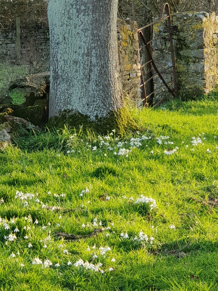 We arrived as the light fell. The snowdrops are out:-