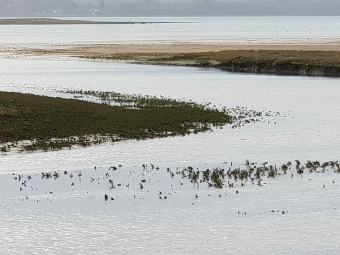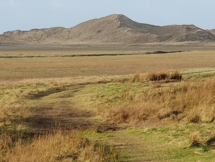 I walked over the fields and along the side of the estuary, looking across to Abermenai Point and the hills beyond, over the dunes and out to the sea:-