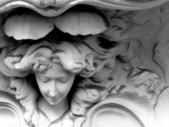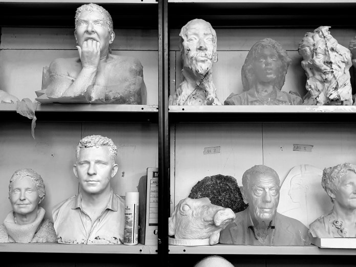 We went down the Old Brompton Road, past the Shell station, to the Royal Society of Sculptors, which occupies a pair of houses which used to be 7 and 8, Gloucester Terrace, but was much enlarged and enriched in the mid-1880s when it became the photographic studio of Elliott and Fry. From 1919 till 1976, it was occupied by Cecil Walter Thomas who designed memorials and coins and, on his death, he left it and the studio at the back to the Royal Society.