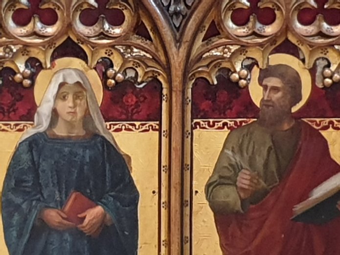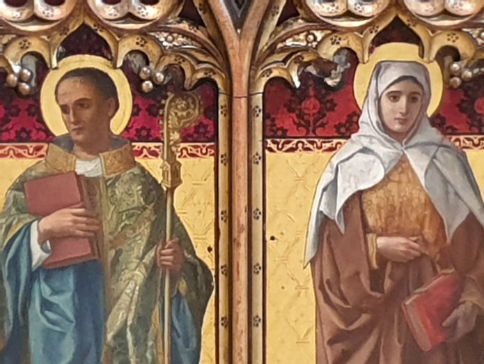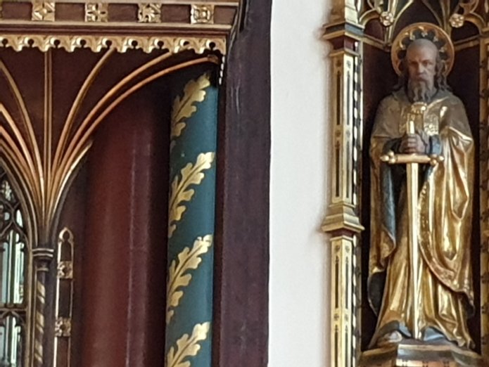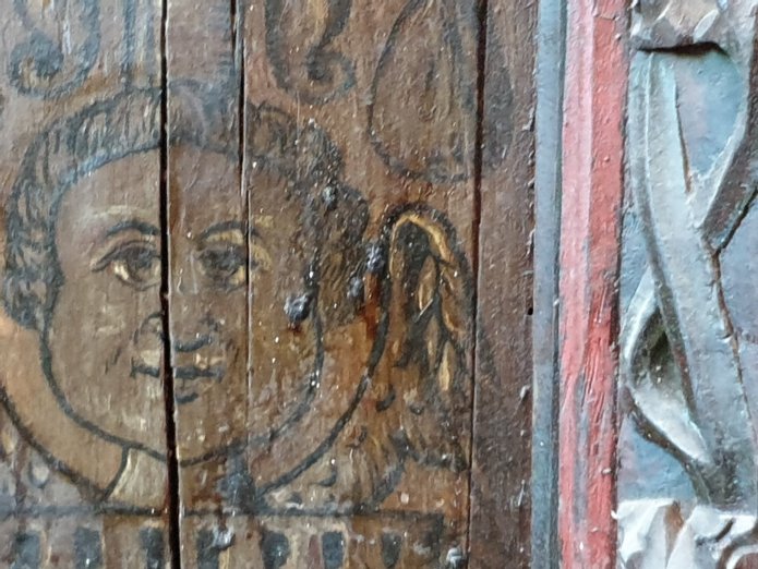 The screen is, as I had thought, pre-Reformation, thought to be c.1460, and although presumably quite heavily restored, still gives a sense of Catholic iconography before Henry VIII and Cromwell got to work.