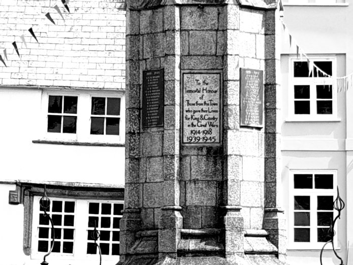 We went into Launceston, an old market town, with castle, museum (closed) and war memorial, guarding the entrance to Cornwall on a hill called Dunsheved, with plenty of signs of Victorian prosperity, but now with all the hallmarks of urban decay – too much out-of-town shopping and charity shops.