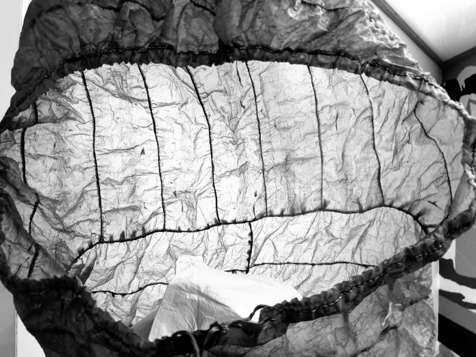 The hood of a sealskin coat:-