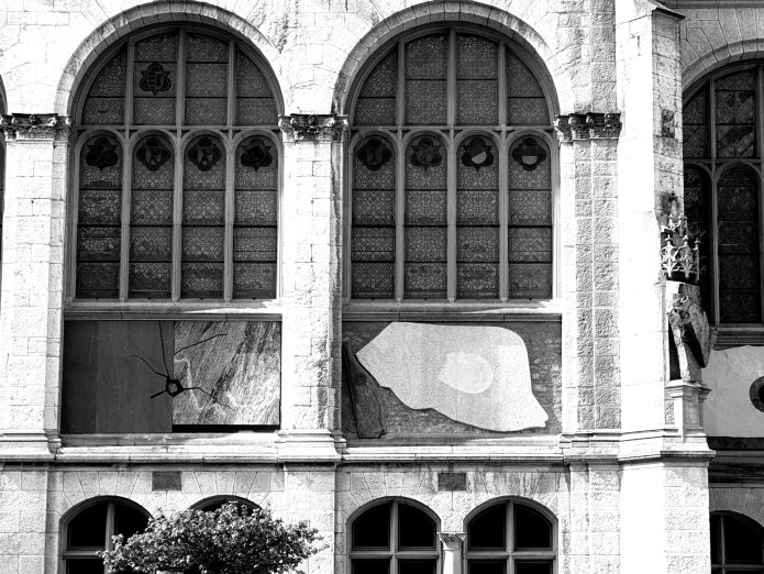 The view out to the adjacent church:-
