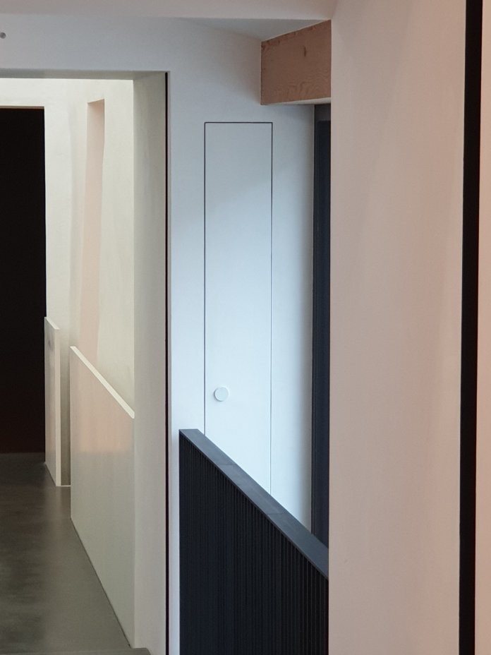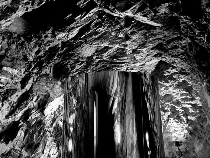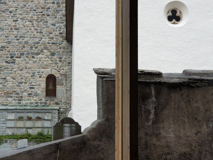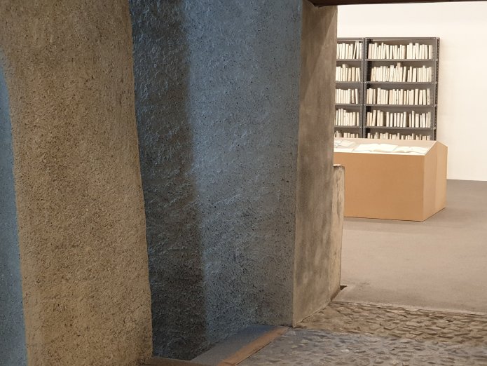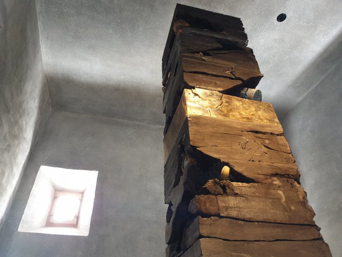 The buildings have been beautifully adapted by Chasper Schmidlin and Lukas Voellmy, digging underground to create new spaces, adapting the existing rooms in the monastery and adjacent building and adding a metalwork staircase, such that the experience of going round the exhibition is unexpectedly complex, with differently sized and shaped spaces, highly personal in the choice of work and no labelling. They call it slow art: hard to get to, no instant gratification, no well known names; instead work to explore:-