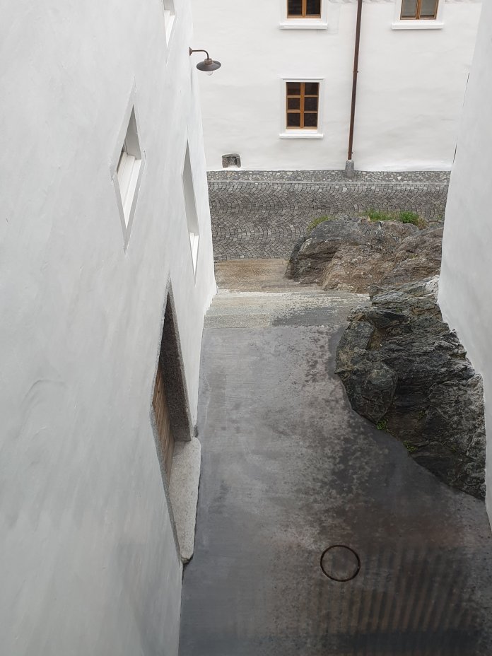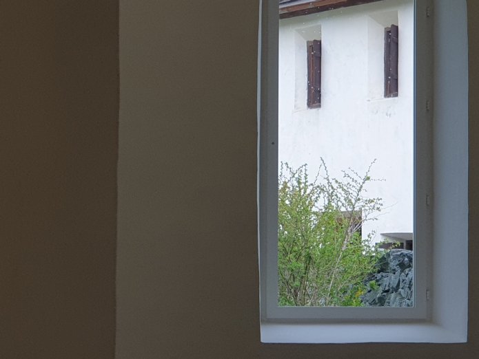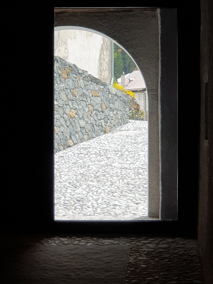 We took a train trip from Zürich up into the Engardin to visit the Muzeum Susch, Grażina Kulczyk’s recently opened, experimental venture to convert an old monastery building, founded in 1157, in a small town (population 300) on the pilgrimage route through the Swiss mountains, alongside a nineteenth-century brewery hard up against the side of the mountain:-