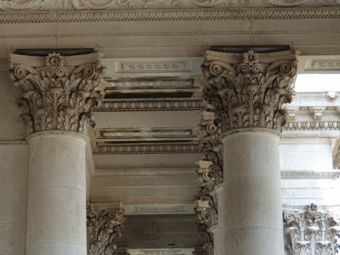 I paid much more attention to the architecture of the Fitzwilliam Museum than I have previously. First, the glories of Basevi’s original, neo-Roman design with its forceful classical detailing:-