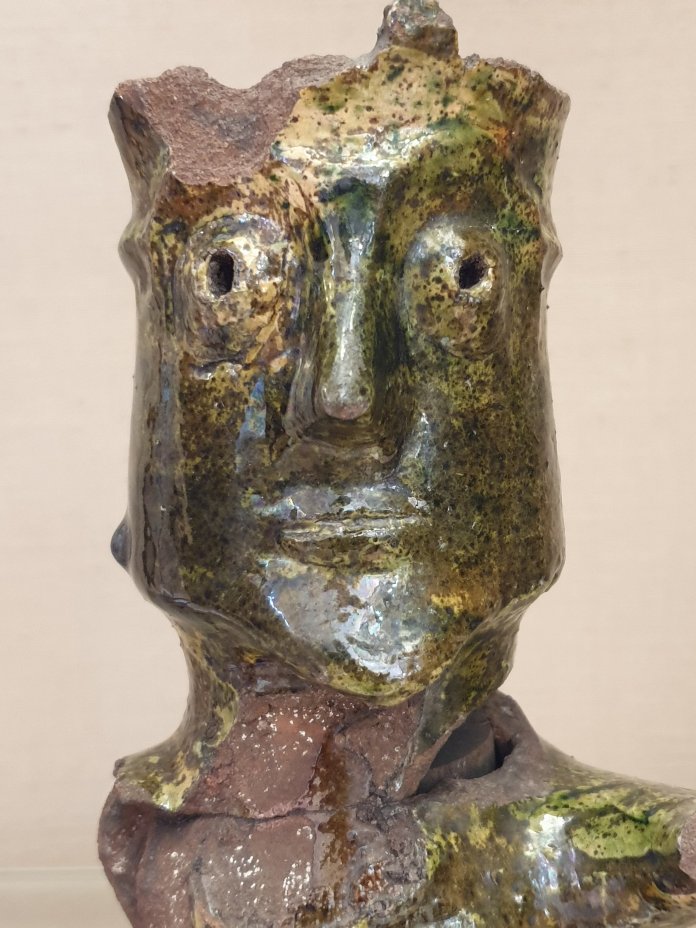Downstairs, I spent more time than I have previously admiring the astonishing range and depth of the Glaisher collection of ceramics (Glaisher was a mathematician and fellow of Trinity).A 13th. century man from a ridge tile:-
