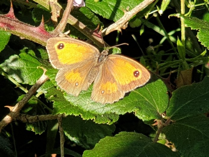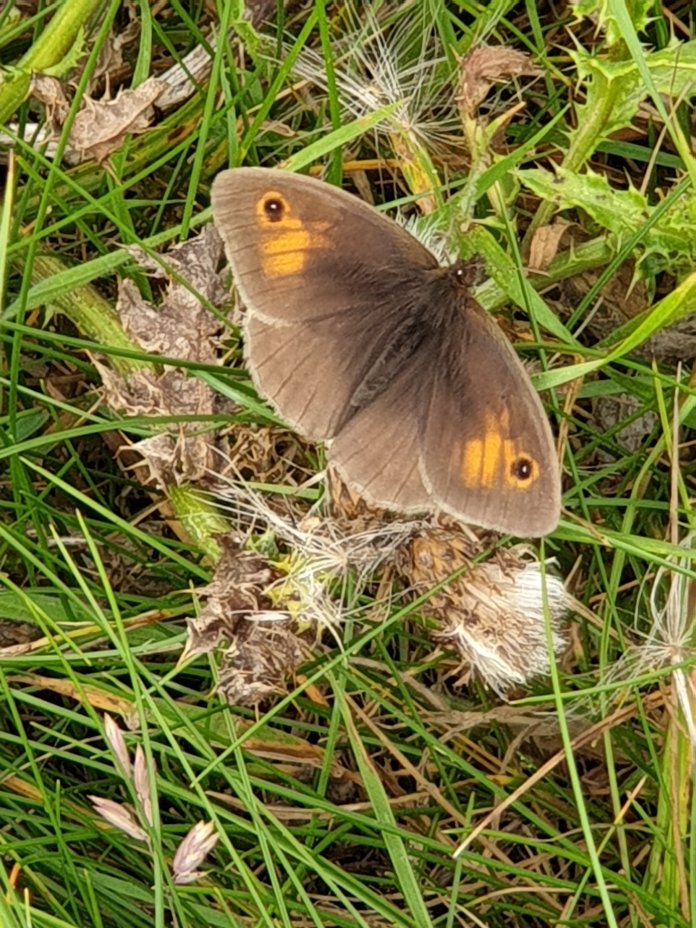 The second is clearly a Meadow Brown. The first looks to me like a Gatekeeper, whose habitat is the same as the Meadow Brown. But my knowledge of butterflies is zero, unlike my mother who was proud of having caught twenty five species by the age of five, and whose net I could have inherited. I feel I’m the same age as universal pesticide.