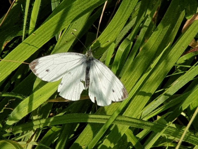 I tried to cheat by reducing the size of the photograph, but it just pixelates. I think it’s a Peacock. Lastly, a Cabbage White. I know it’s dead common, but I’m still pleased to have found five species in half an hour, just by walking down to the river:-