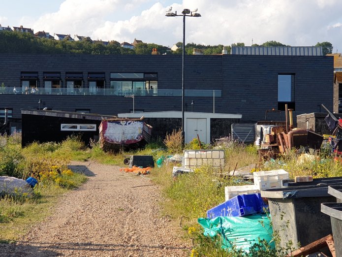 The building remains as fresh and interesting as when it first opened, surrounded by boats, tar blackened beach huts and the bric-à-brac of the shoreline:-