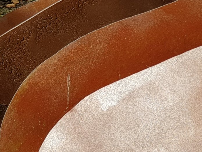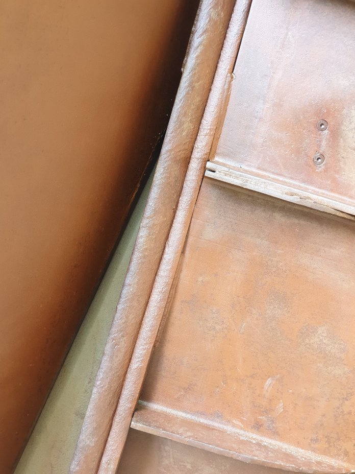 I saw them last in spring. Now, it’s high summer. I got interested in the quality of the surface texture of work, much of which was assembled out of existing found fragments from naval and industrial scrapyards, laid out on the floor.