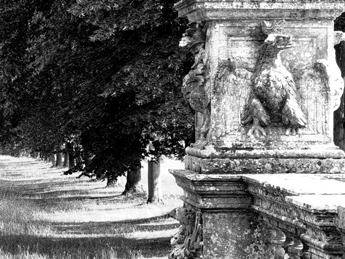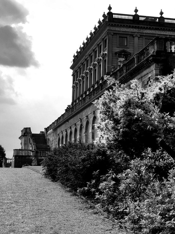What remains of the formal gardens of Cliveden, originally laid out by Lord Orkney in the 1720s as a ‘Quaker parterre’, looked good tonight, as did Barry’s south front:-