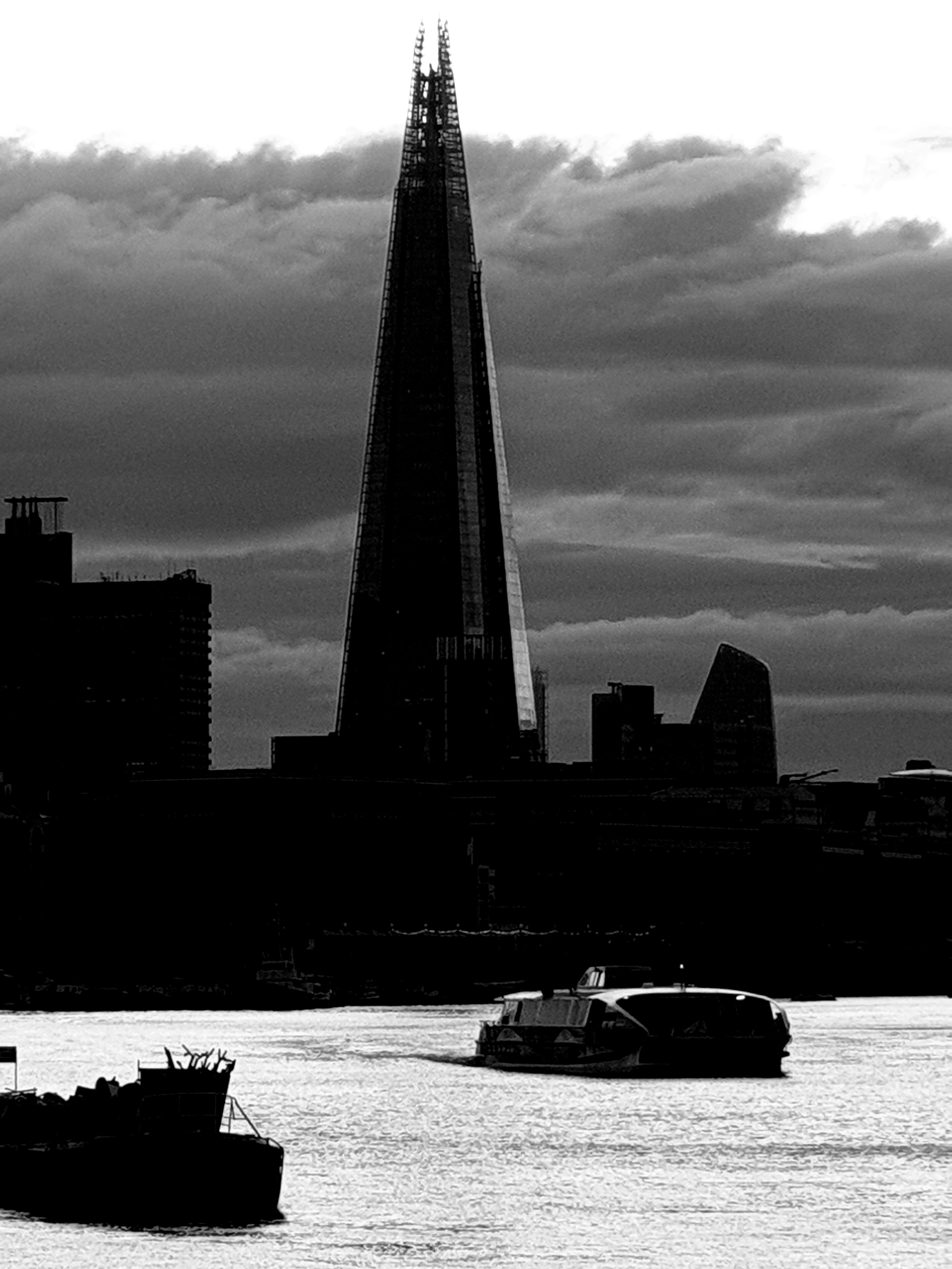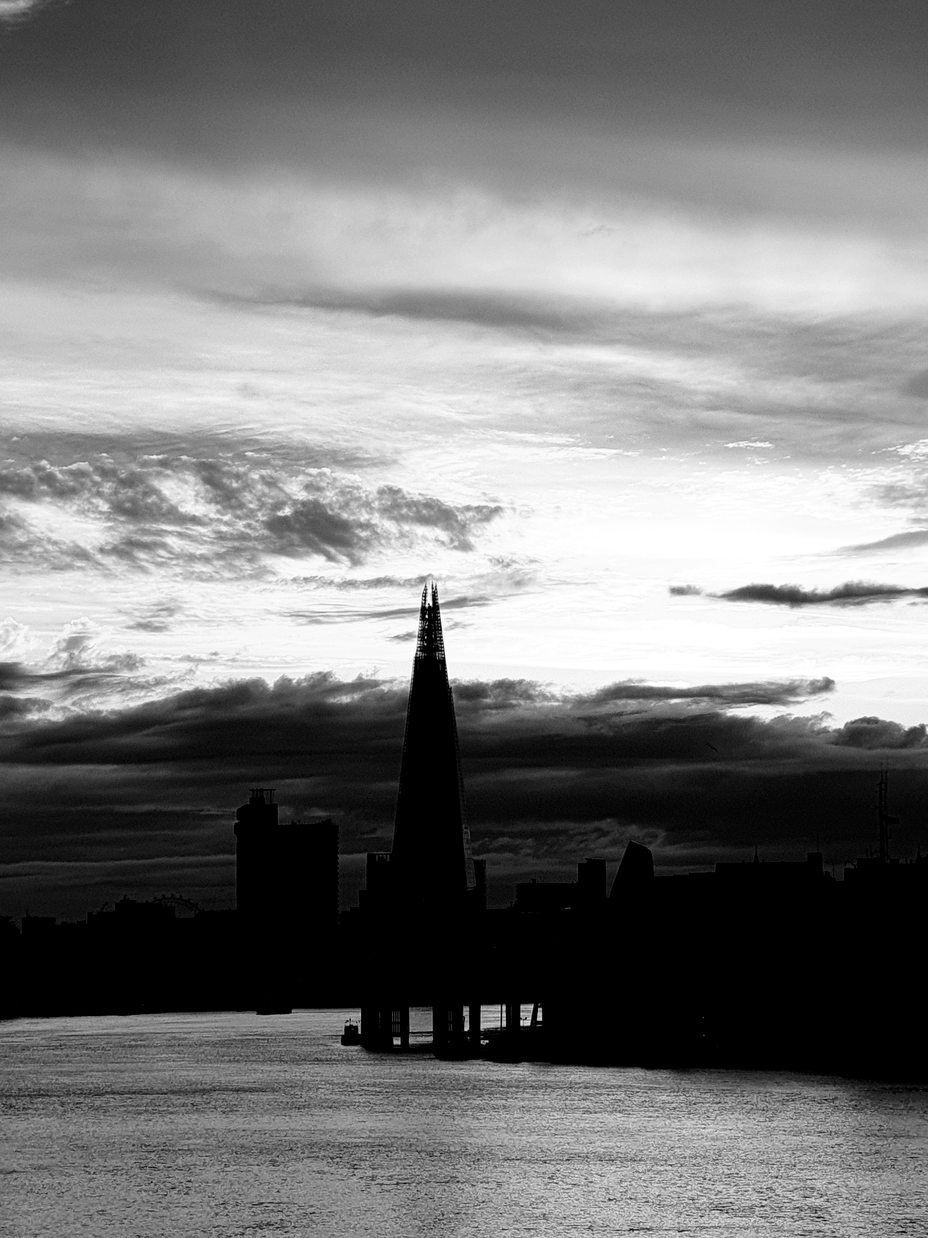 Before Monteverdi, I walked down to the shore of the Thames, which is reached past the Mayflower and warehouses and was beautiful at dusk, the quiet of the river, with Tower Bridge in the distance and the Shard looming over it all:-
