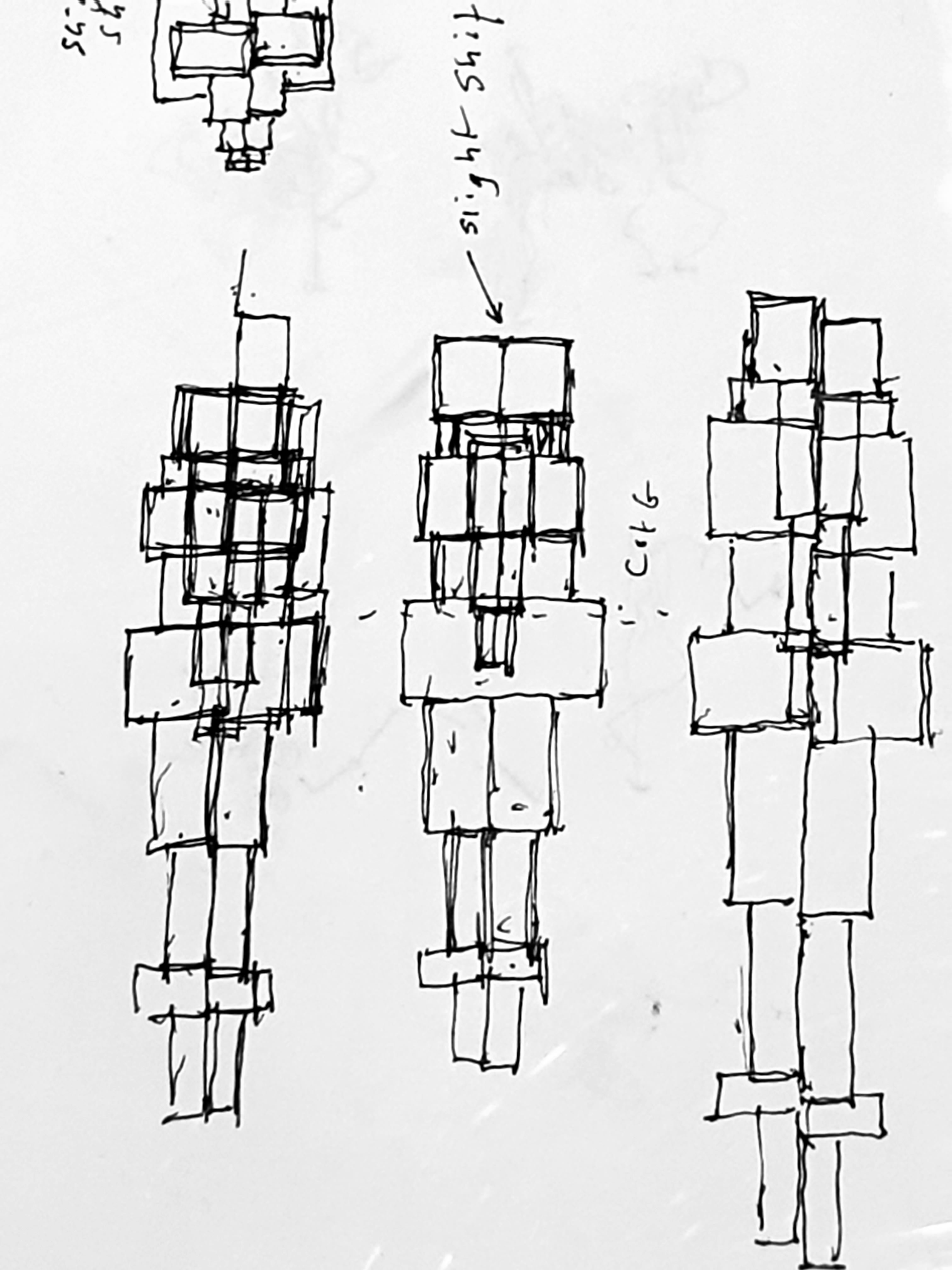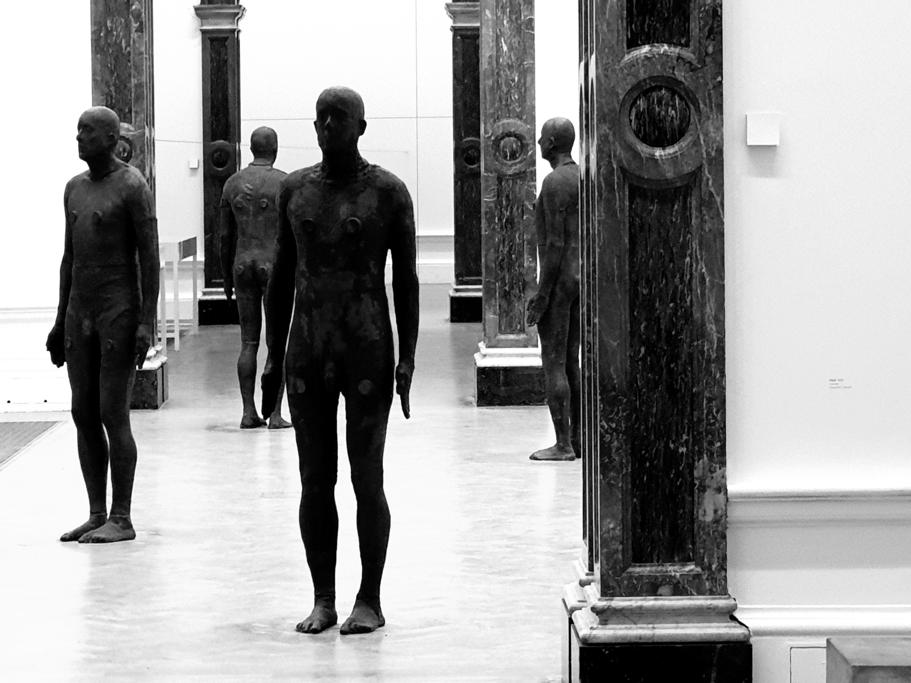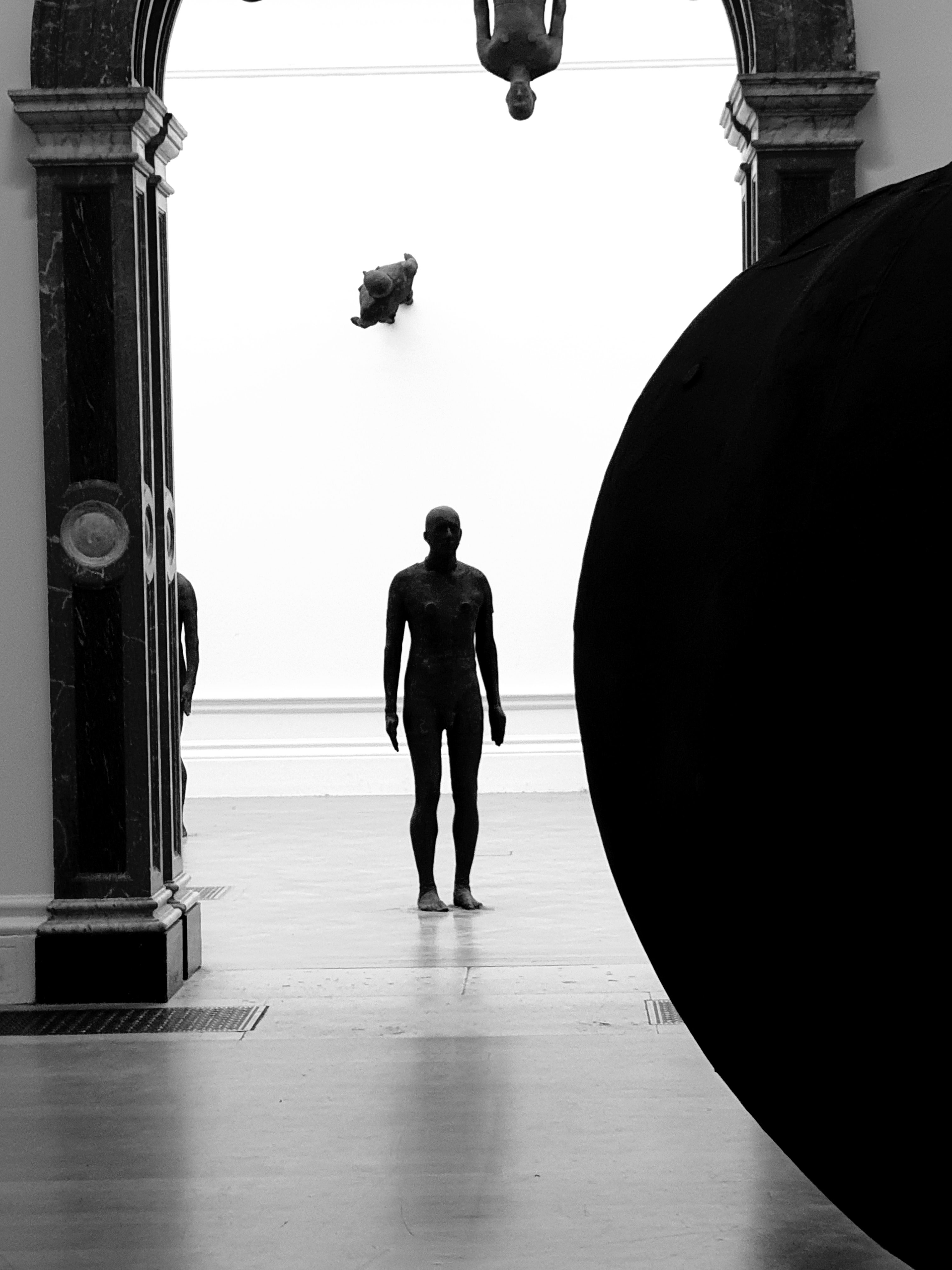 We went to see the Antony Gormley exhibition again, in order to be able to absorb and digest its mixture of a fascination with line drawing and invention and, at the same time, the physical materiality of the body, particularly obvious in the pleasure with which he explores the form of physical shapes in the room with two cases of notebooks and drawings:-
