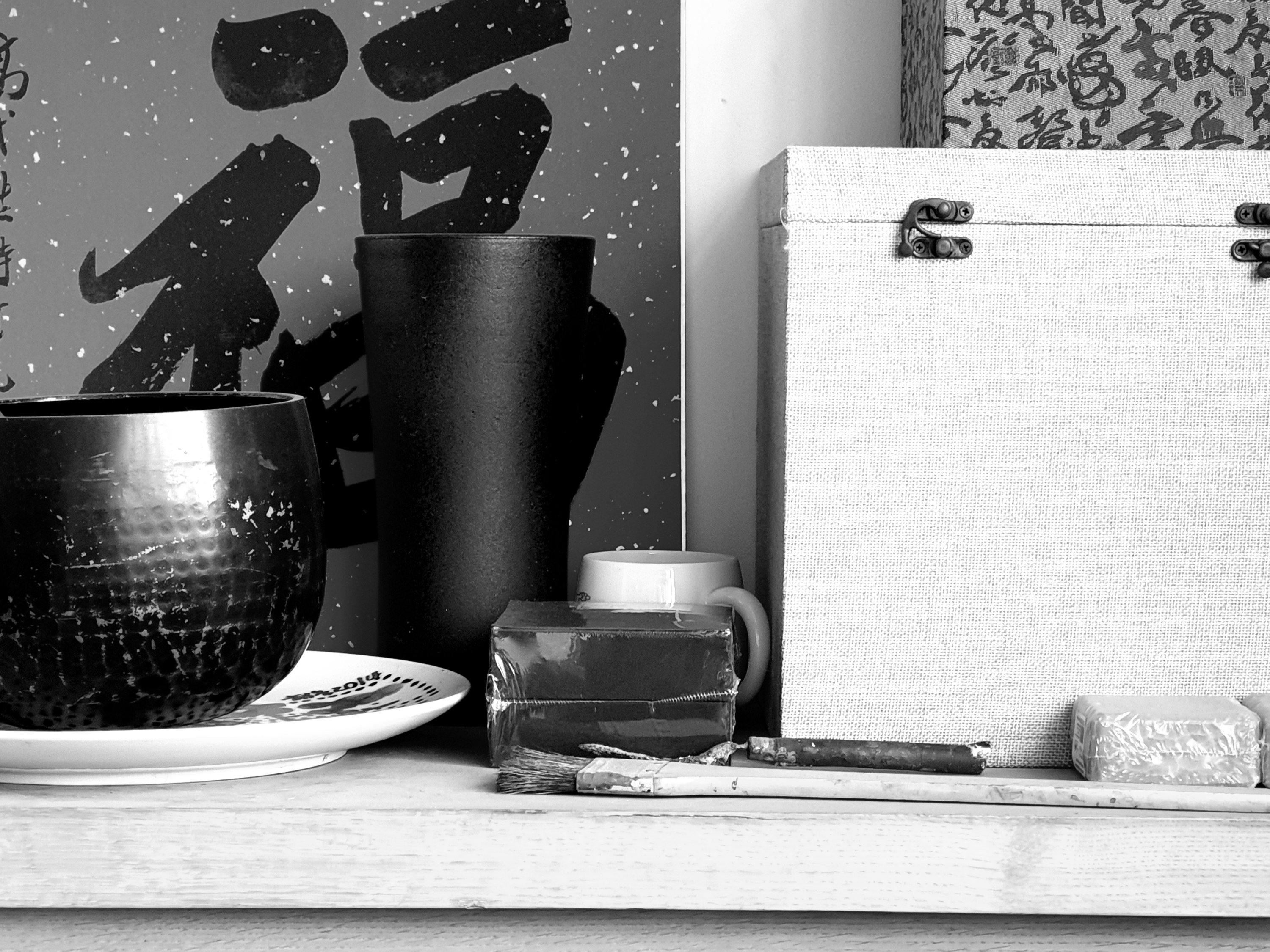 We started off close to the top floor of an apartment block in the studio of Wang Jieyin, drinking tea with the sun coming in:-