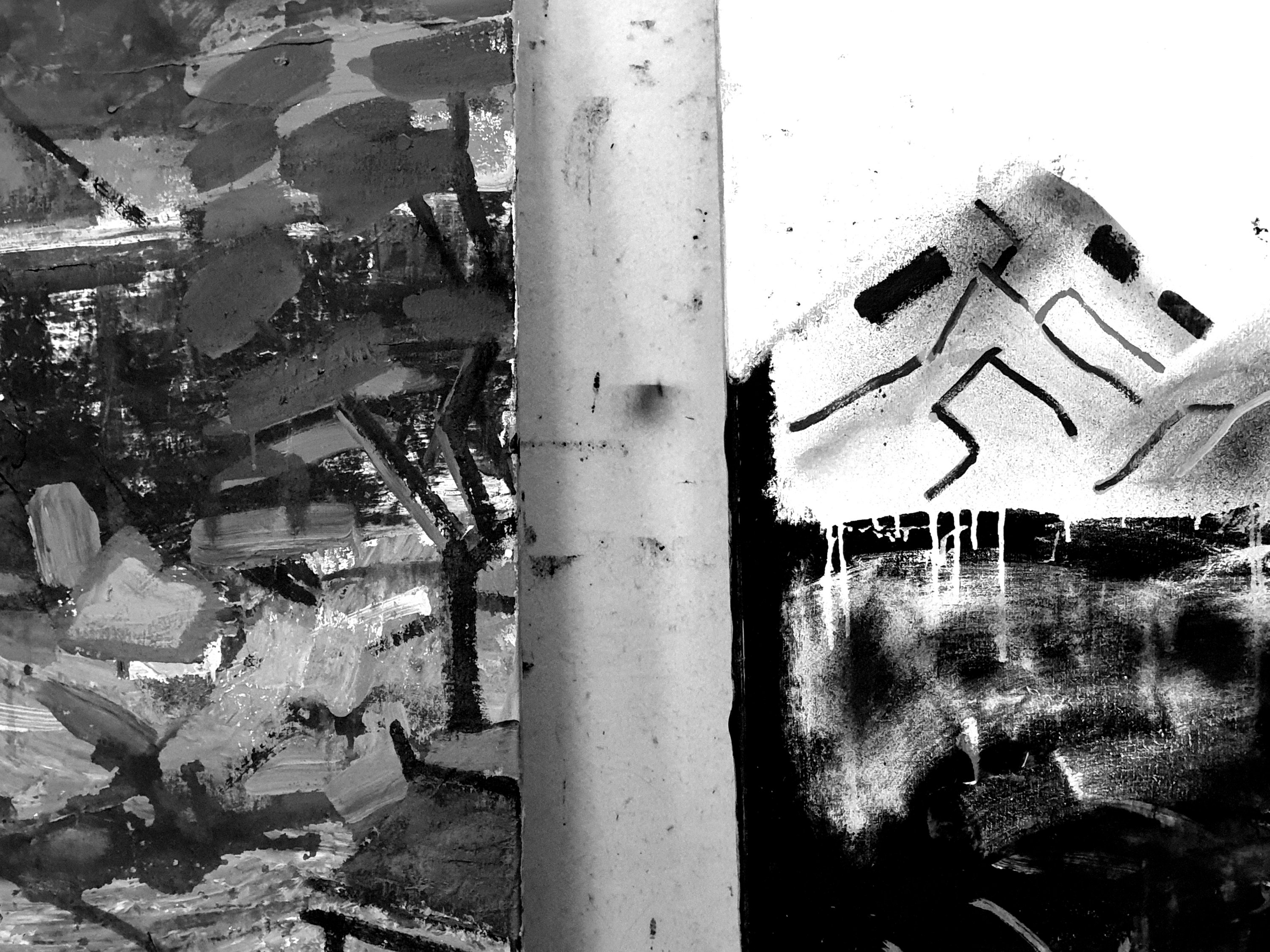 He paints remembered landscapes, looking out from his studio:-
