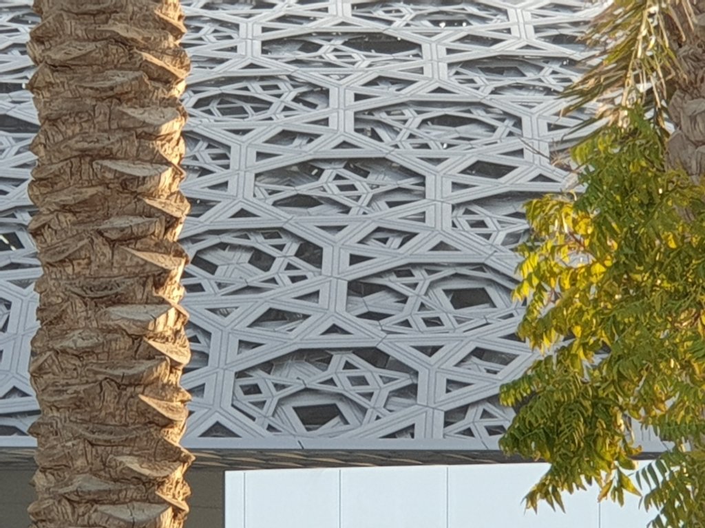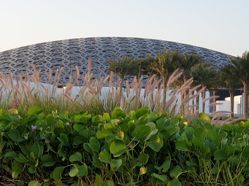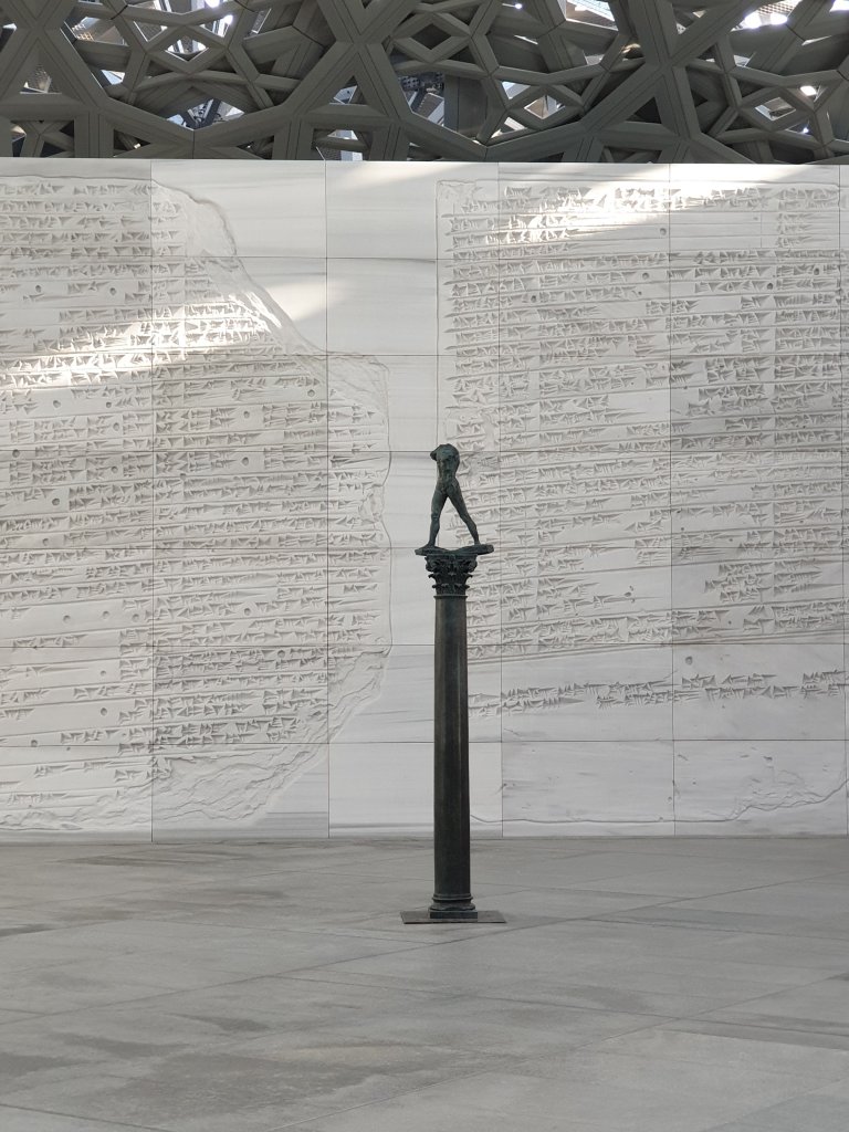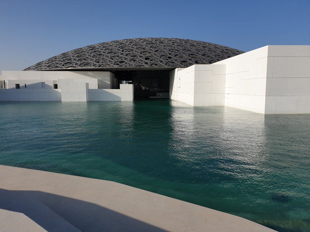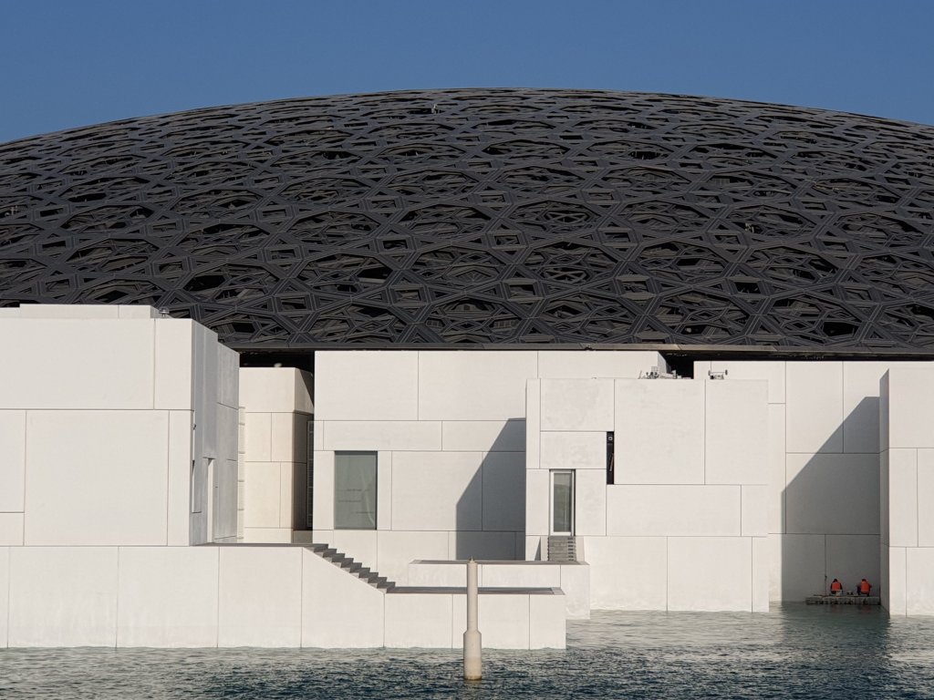 I have just had the briefest, but most exhilarating introduction to the treasures of the Louvre Abu Dhabi, first of all to Jean Nouvel’s astonishing interiors – more interesting inside than outside because you get a sense of the depth of the shallow dome and the way in which light plays through it:-