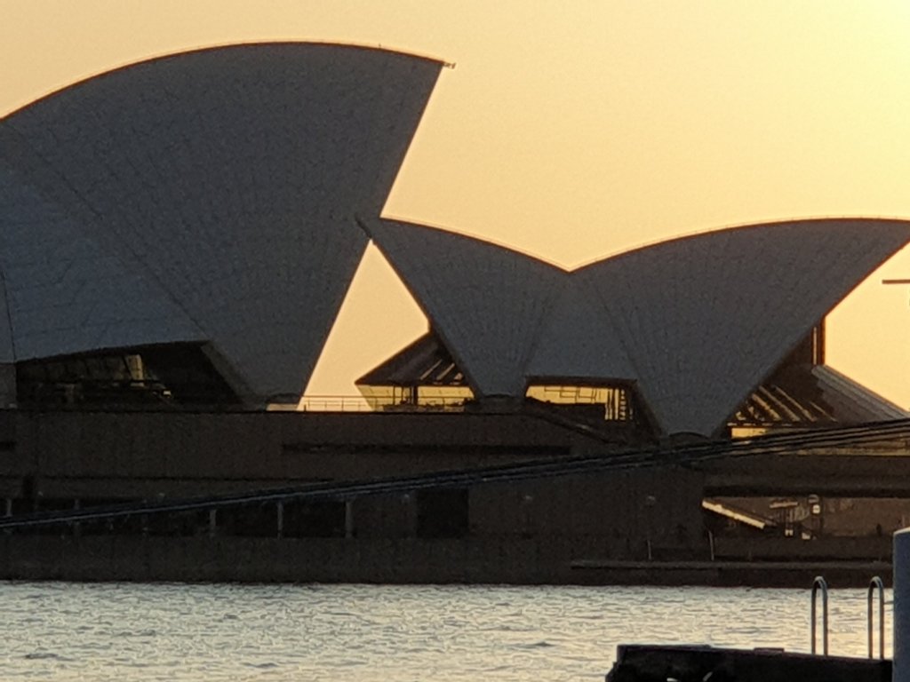 Given the condition of multiple jet lag, I got up early to see the sun rise on the Sydney Opera House (what you could see of it beyond a monster ocean liner):-