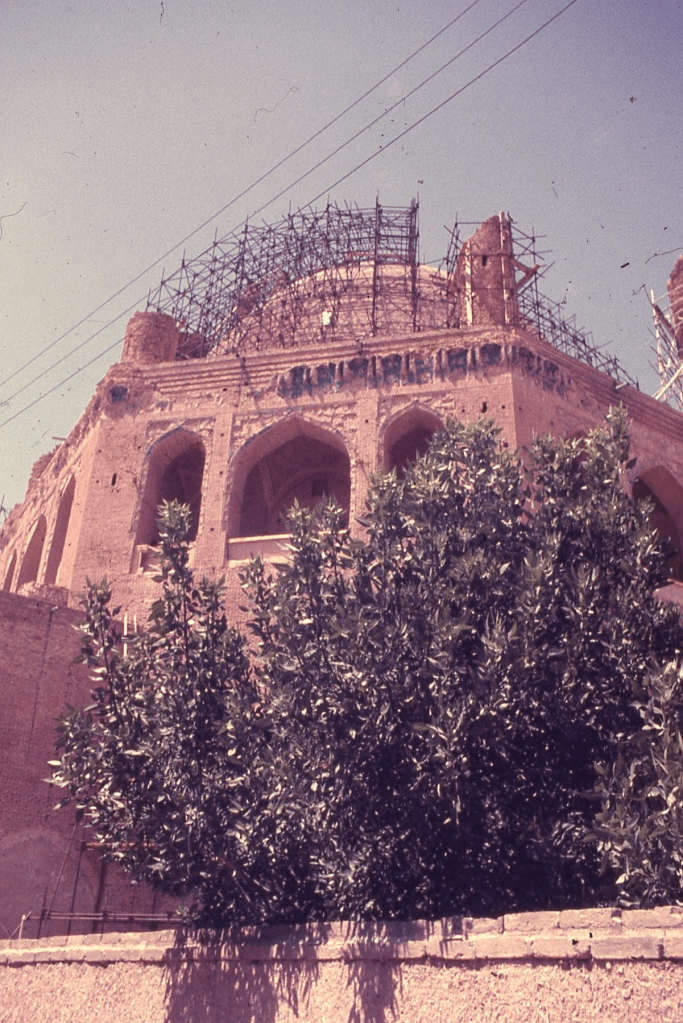 Prompted by what was happening in Iran a couple of weeks ago, I wrote about the experience of visiting the mosque at Soltaniyeh in the summer of 1973. I had only the haziest recollection of what it looked like, but now my friend, Adam Bennett, with whom I was travelling, has sent me a digitised image of the Ektachrome slide he took then, now a bit faded, like my memory:-