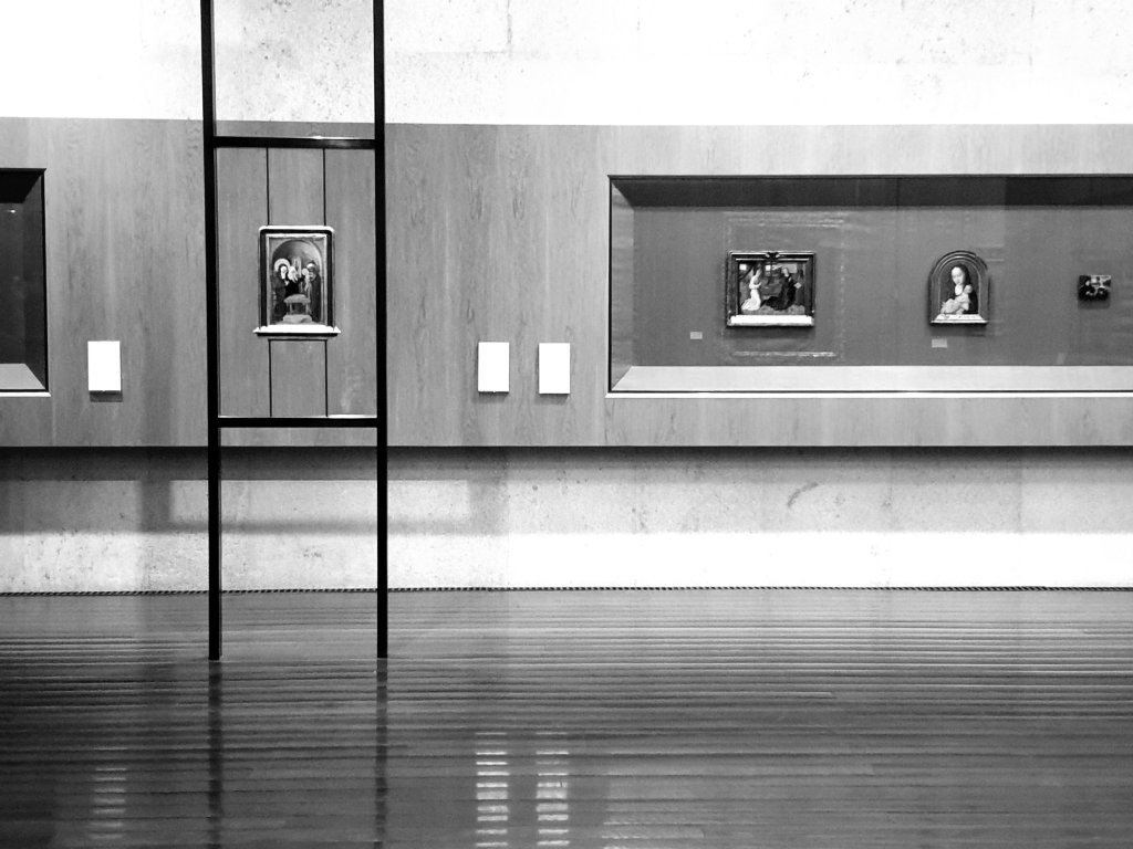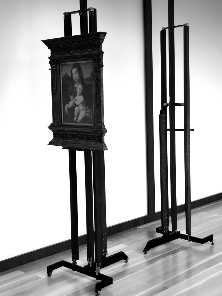 Scarpa followed their example of taking pictures off the wall and often out of their frame and hung them on elaborately crafted easels:-