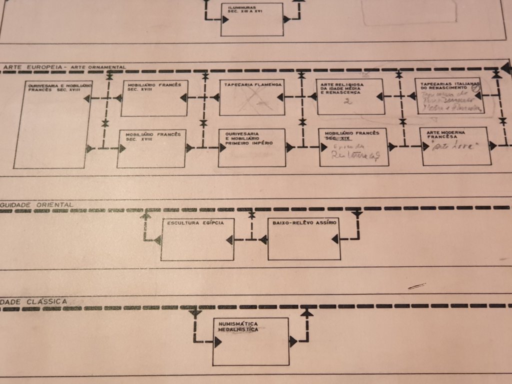 The architects who won the competition in 1960 were Alberto Pessoa, Ruy d’Athouguia and Pedro Cid. But the key person determining the design of the galleries was the Italian, Franco Albini, one of the advisors on the project. They drew up a version of a computer programme to help with the layout:-