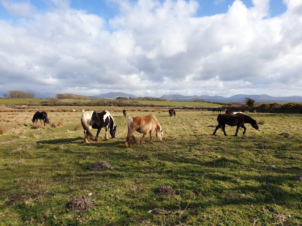 The farmer came in the early part of the afternoon and exchanged the sheep in the adjacent field for horses:-