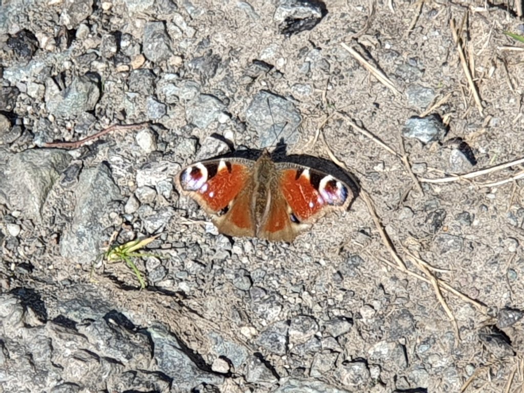 Walking up the lane behind the church, there were Peacock butterflies frolicking:-