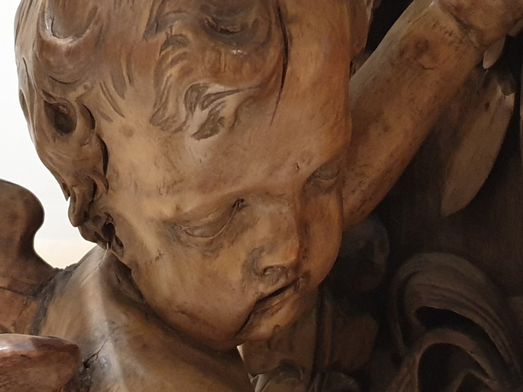 There’s a sensational Grinling Gibbons font cover from All Hallows by the Tower, commissioned by a parishioner in 1682:-