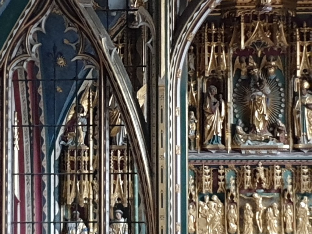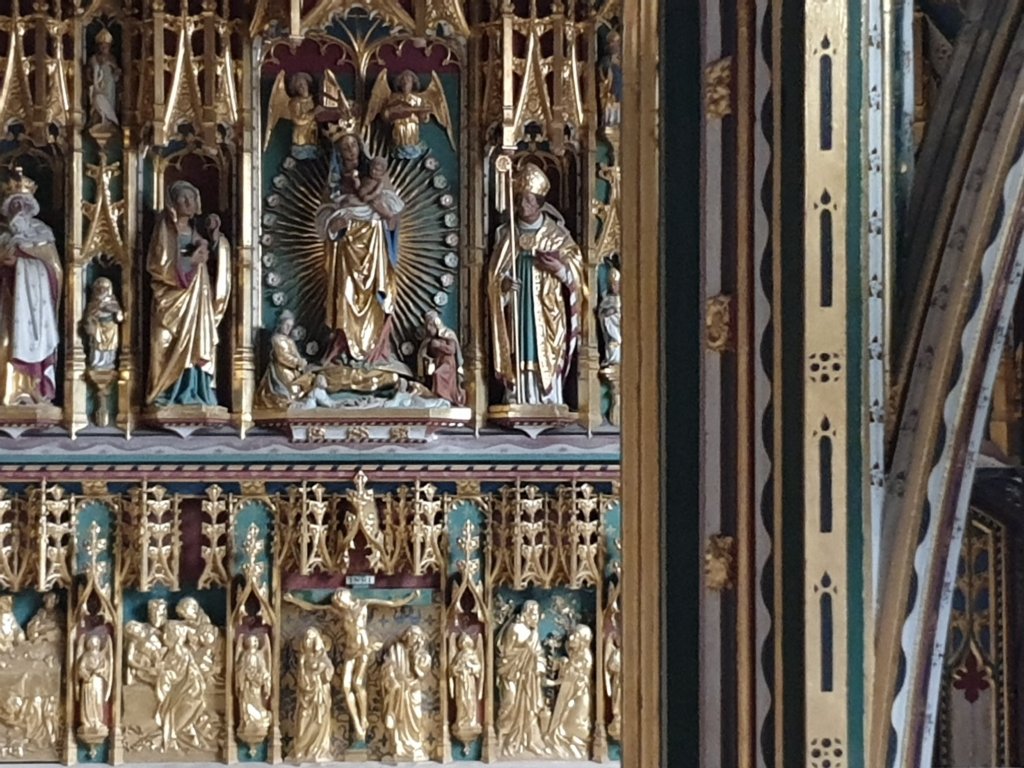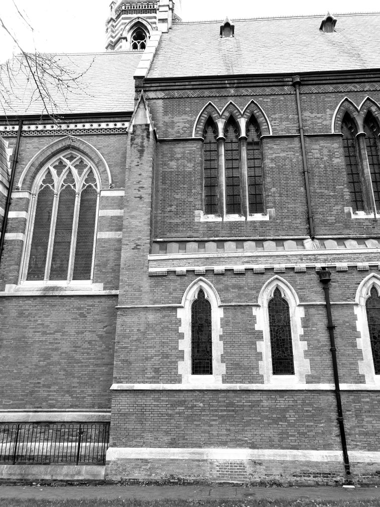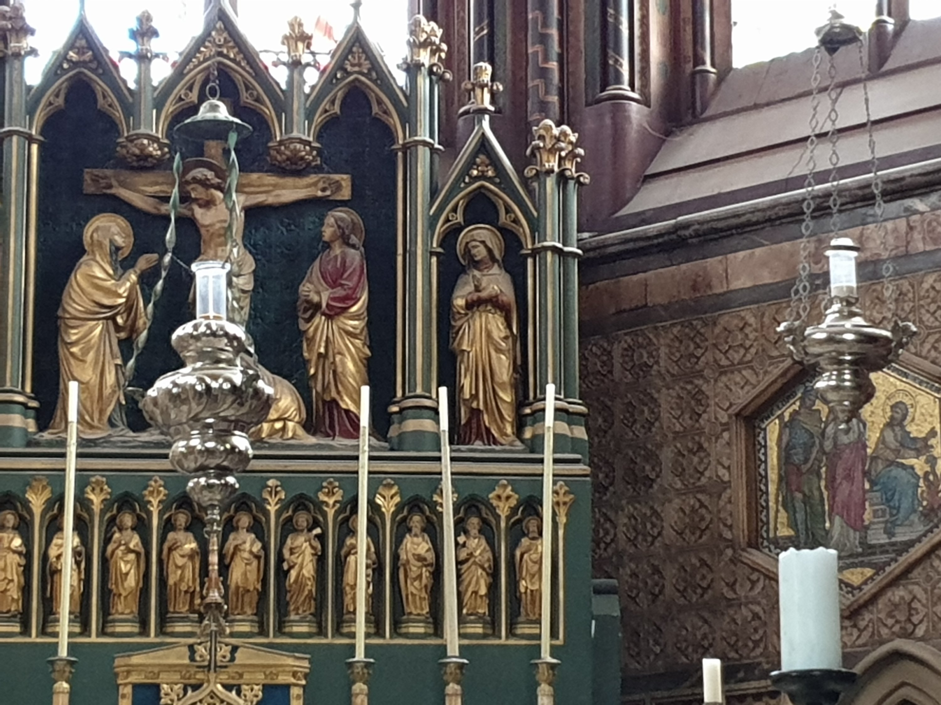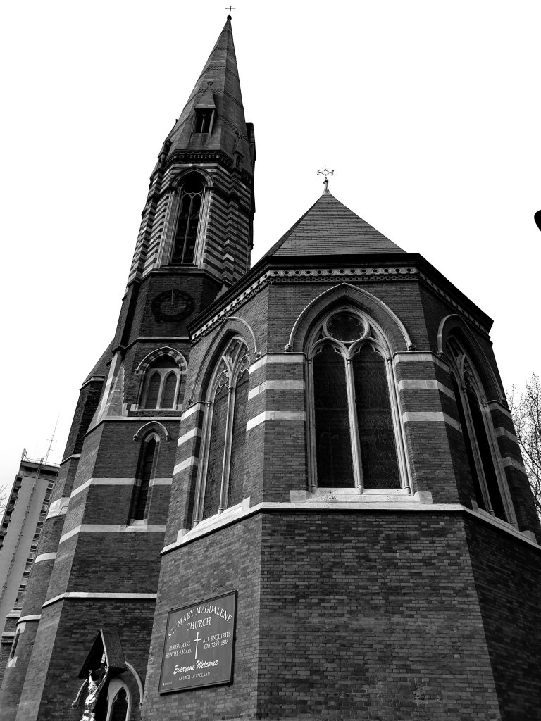St Mary Magdalene is a fine church – high gothic, tall and brick, designed by G.E. Street as an outpost of All Saints, Margaret Street, originally surrounded by working class housing, now by tower blocks:-
