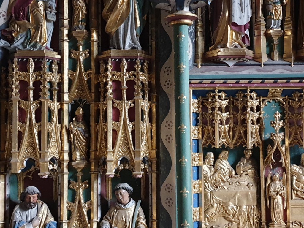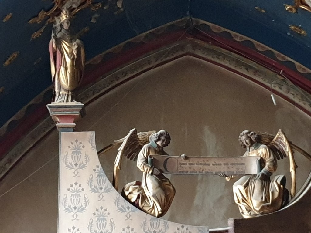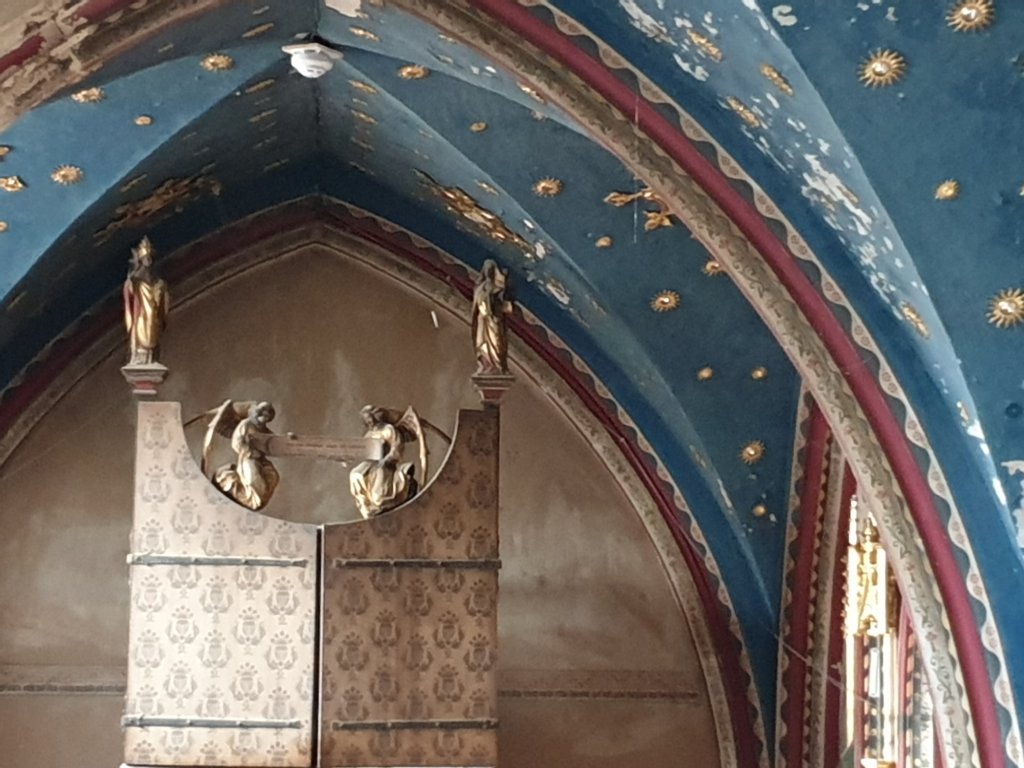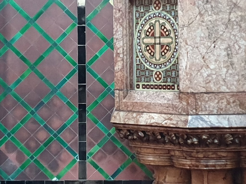 Best of all is the Chapel of St. Sepulchre downstairs, locked up while waiting for restoration, designed by Ninian Comper in memory of Father West:-