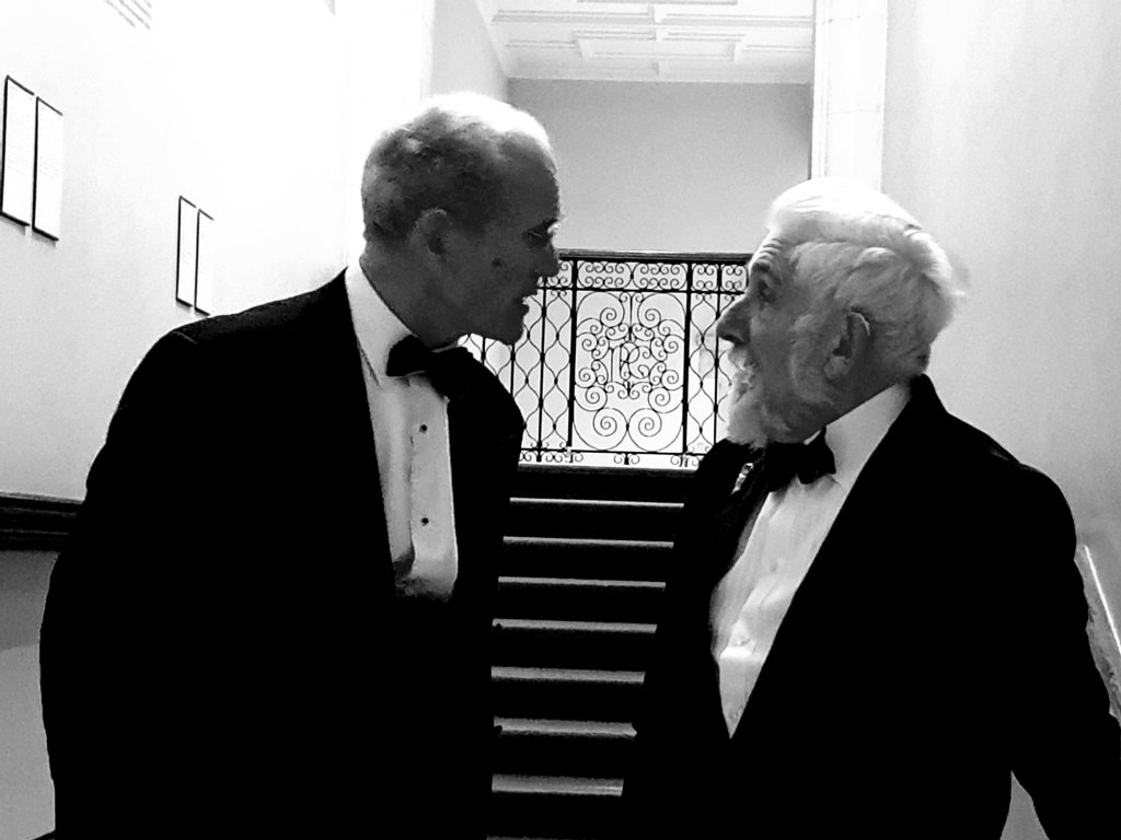 It was the last of the Portrait Dinners, perhaps the last big gathering for a while, before the gallery closes at the end of June for its refurb. The former Directors were invited – those who were living, at least – including Roy Strong who started work at the NPG in 1959, more than sixty years ago, and was a protegé of Cecil Beaton, whose exhibition is downstairs. After being photographed in front of the Somerset House Conference, as Roy was as a Young Turk in 1967, we trooped downstairs for champagne:-