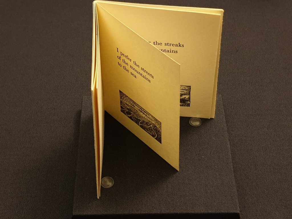 Being in South Kensington, I thought I should call in on the small, but excellent exhibition, Landscape and Language, in the cases outside the National Art Library, about the way landscape, exploration, and topography have been reflected in, and inspired, artists’ books.