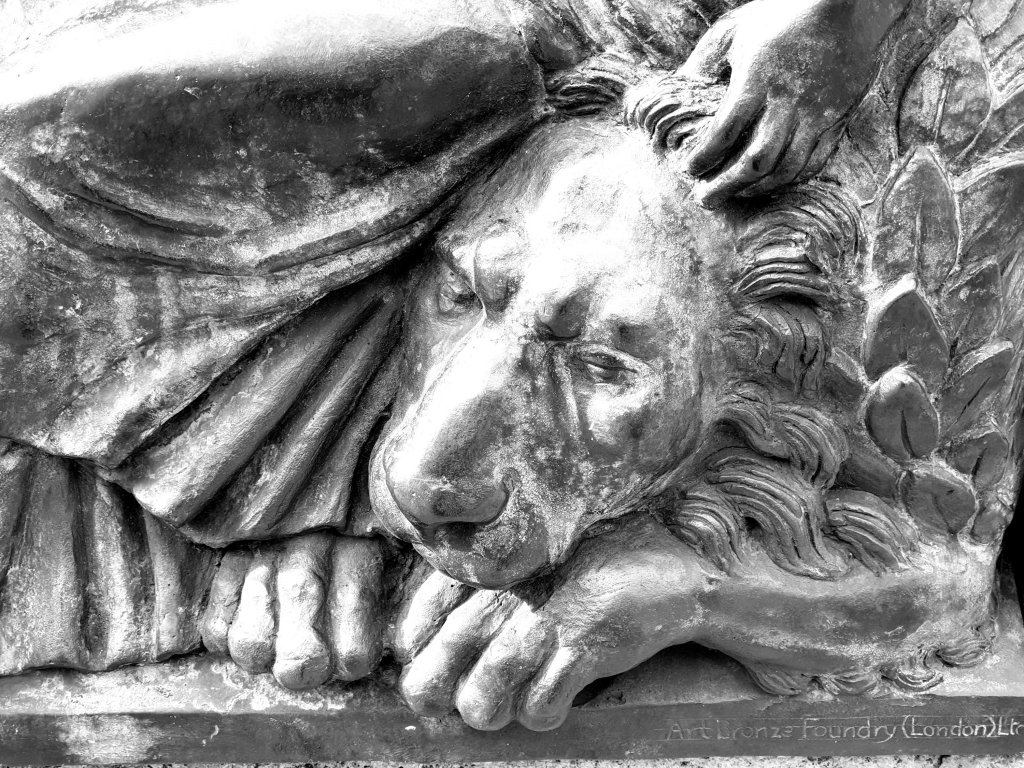 First, we looked at the plinth of the statue of Robert Milligan, the Scottish merchant and slave factor who was responsible for the construction of West India Docks. Only the bronze plaque remains showing a helmeted warrior – is it Britannia ? – sitting on a sleeping lion receiving gifts, presumably brought by the sailing ship behind:-