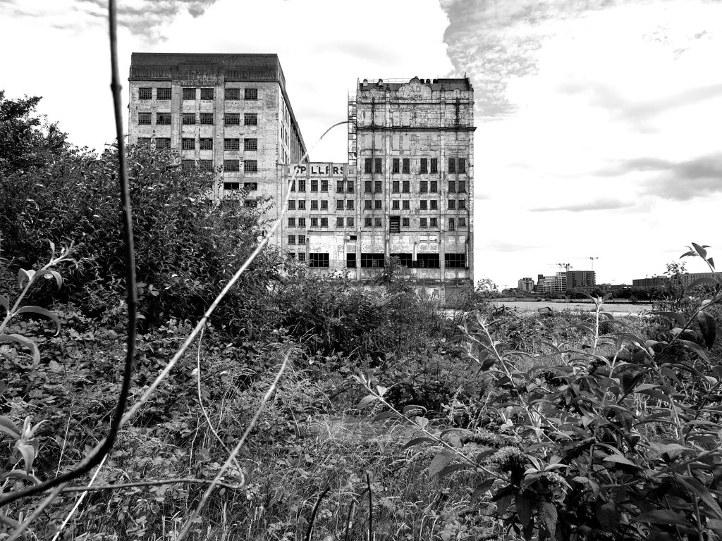 We walked past Millennium Mills, one of the last remaining grand industrial ruins still in Silvertown, used by Derek Jarman for the filming of The Last of England. It was originally built in 1905, destroyed by an explosion in the Brunner Mond works next door in 1917, reconstructed for Spillers in 1933, who dealt in flour before they turned to dog biscuits:-